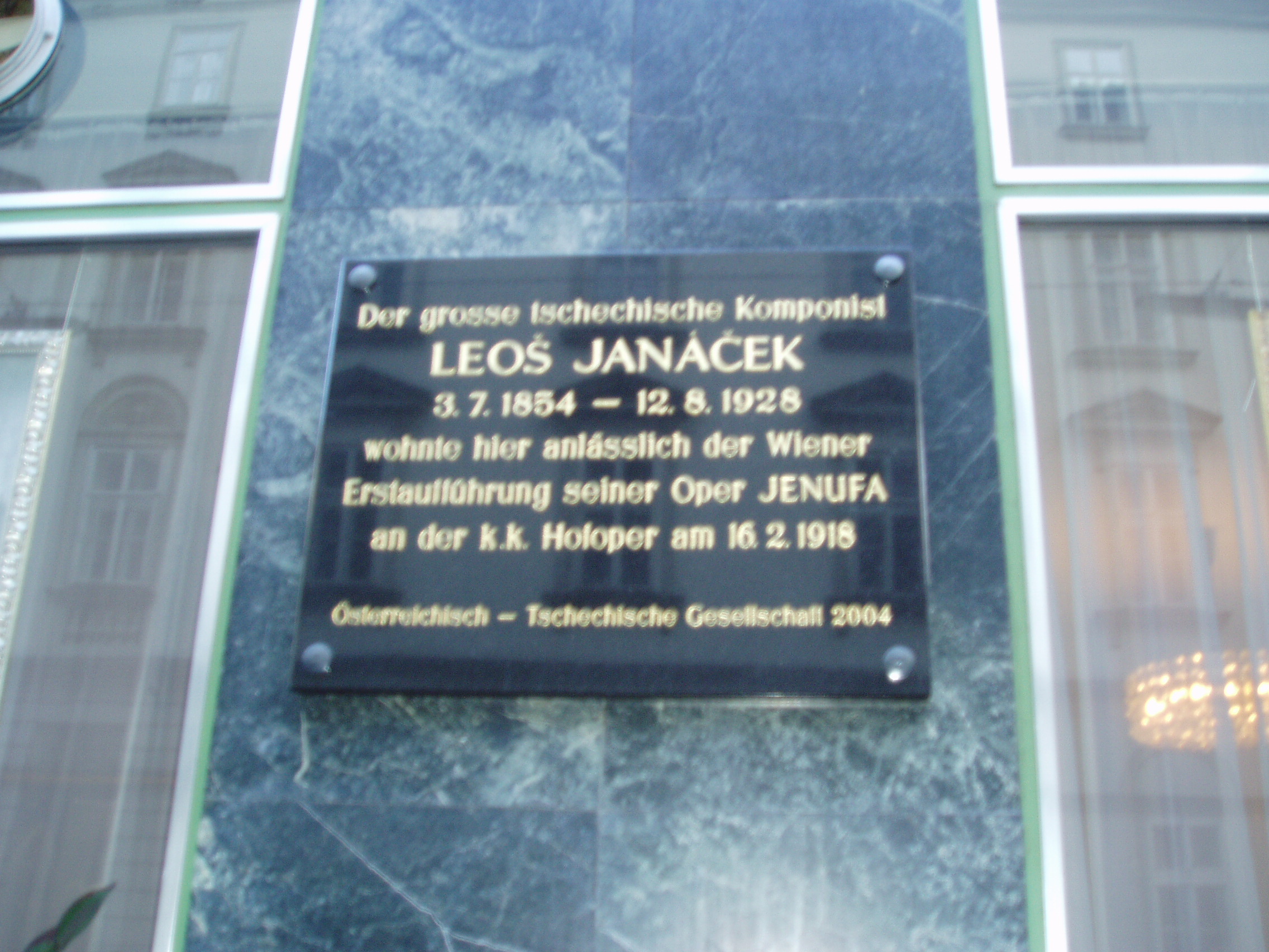 Nyilvános 1547 | 3433 | Fleischmarkt 24. Hotel Sport | A szálloda épületének homlokzatán Leos Janacek zeneszerző neve olvasható, aki 1918-ban itt szállt meg, amikor Jenufa című operáját bemutatták az operaházban. Ezen a helyen korábban is szálloda állt, megszálltak benne többek között Mozart, Liszt és Wagner is. |