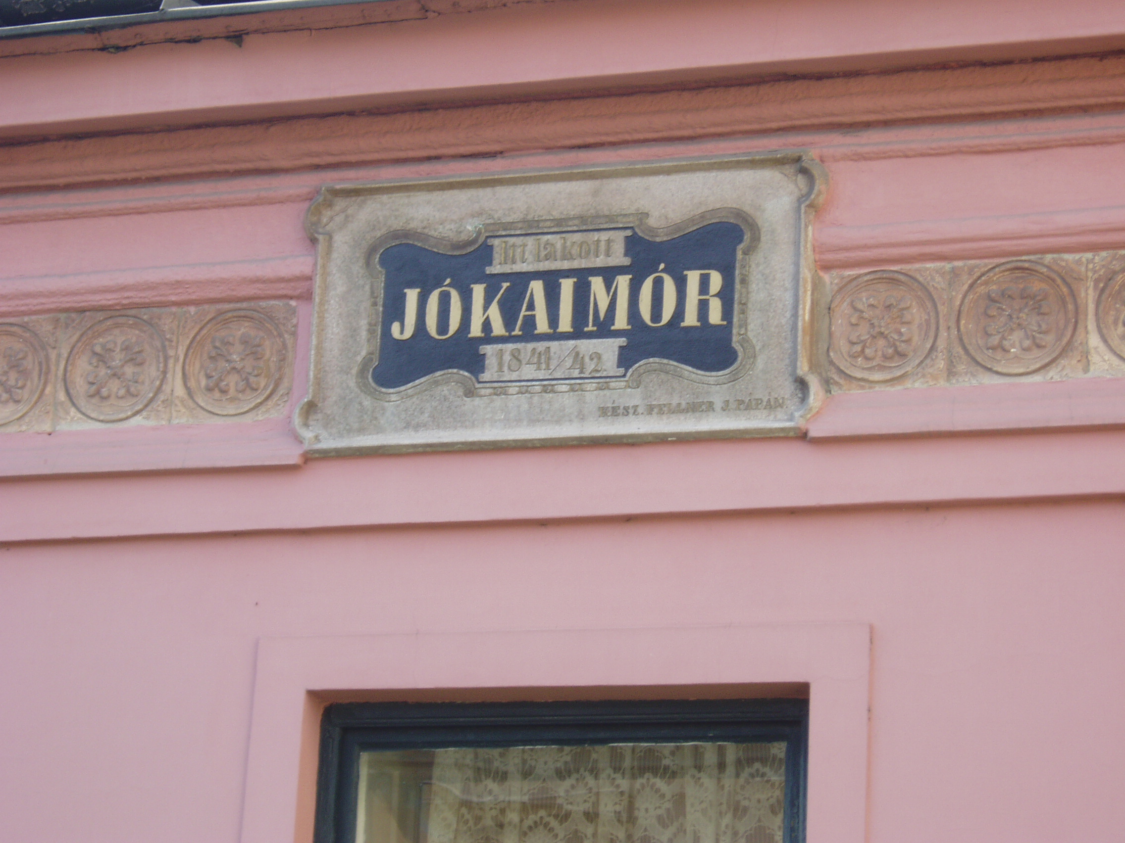 Nyilvános 1017 | 1861 | Pápa, Jókai utca 13. | Klasszicista stílusban, 1820 körül épült egyemeletes lakóház. Homlokzatán emléktábla jelzi, hogy pápai diák korában, 1841/42-ben itt lakott Jókai Mór. Jókai - akkor még Jókay - Mórt sógora, Vály Ferenc hozta Pápára 1841. aug. 21-én különbözeti vizsgát tenni, ami után a fiú a Kollégium (lásd: Pápa, Petőfi u. 13.) diákja lett. Nov. 1-jén költözött be bebbe a házba, Klára Mihály otthonába, kosztosdiákként. (Még idős kori levelében is emlegette a "derék" Klára Mariska főztjét.) Együtt lakott Kerkapoly Károly későbbi filozófiaprofesszorrel és pénzügyminiszterrel és egy Pap Dénes nevű iskolatársával. Az itt töltött időben Jókai jeles előmenetelű diák volt. Tanulmányai mellett portréfestéssel is foglalkozott. Visszavonult, szolíd életet élt, amivel táraitól kiérdemelte a "Jámbor" becenevet. Ebben gyerekkori betegségének, tüdő-problémáinak is része volt. Lakótársain kívül elsősorban Orlai Petrich Somával barátkozott. Petőfivel 1842-ben ismerkedett meg. Eltérő egyéniségük ellenére hamar jóban lettek, sok időt töltött Petőfiék szállásán (lásd: Pápa, Petőfi u. 11.), de igazi barátság csak a későbbi kecskeméti években alakult ki közöttük. Bár még elsősorban festőművésznek készült, de novellákat is írt; az egyikkel második díjat nyert 1842-ben (lásd: Pápa, Fő u. 17.). Itt töltött időszaka, a diákélet szokásai, jeles professzorai nagy hatást gyakoroltak életművére. Különösen sok pápai motívum lelhető fel az És mégis mozog a föld és az Egetvívó asszonyszív című regényeiben. A házat még Jókai életében, 1880-ban jelölték meg emléktáblával. A fénykép 2007 áprilisában készült. Felh. irod.: Németh Adél - Szabó Lajos: Pápa. Bp. Panoráma, 1989 Petőfi emlékhelyek a Kérpát-medencében. Kiskőrös, 1996, Petőfi Sándor Társaság "A kényes úrfi s a rongyos baka". Tanulmányok két halhatatlan pápai diákról. Pápa, 2001, Pápai Református Gyűjtemények |