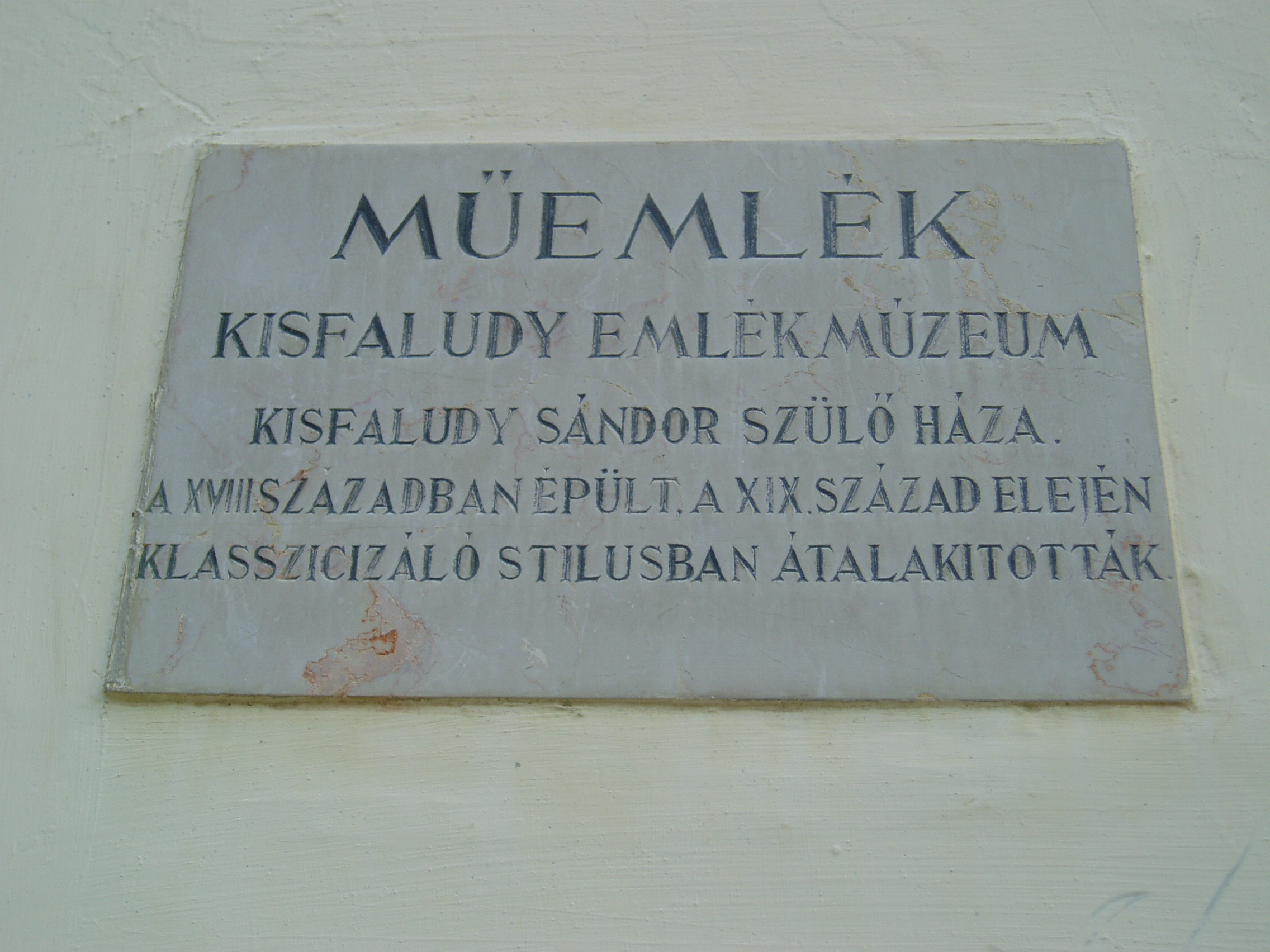 Nyilvános 1032 | 1679 | Sümeg, Kisfaludy tér 2. | Ebben a házban, amely ma a Városi Múzeum otthona, született és halt meg Kisfaludy Sándor. A XVII. században épült ház eredetileg a Sándorffy család tulajdona volt, a Kisfaludyakra örökség útján maradt. A XIX. században klasszicizáló stílusban többször is átépítették a boltíves barokk kúriát, ittlakása idején Kisfaludy Sándor is bővíttette. A költő 1772. szept. 27-én látta meg itt a napvilágot. Hat éves volt, amikor a család Tétre költözött (Károly öccse ott született 1788-ban). Eseménydús ifjúsága volt. 1793–1796 között a bécsi testőrség tagja. Részt vett a franciák elleni hadjáratban, fogságba is esett. 1799-ben leszerelt, a következő évben feleségül vette Szegedy Rózát. A házaspár Ötvös-pusztán, majd Kámban lakott. Sümegre 1805-ben pedig költöztek, itt éltek halálukig. Miután 1832-ben elveszítette szeretett feleségét, az idős költő újra megnősült, azonban második felesége, Vajda Amália is hamarosan meghalt. Ő maga itt, otthonában hunyt el 1844. október 28-án. Sírja a sümegi temetőben van (lásd: Sümeg, Temető). Kisfaludynak volt még egy ingatlana Sümegen, egy ma is álló présház (Sümeg, Külterület XI. 200). Sok időt töltött ott is, s ott vetette papírra az inszurrekció kudarcos történetét. A házat emléktábla jelöli, mellette áll Kisfaludy tölgyfája, amelyet a hagyomány szerint a költő ültetett (sajnos, fénykép nincs róla, nem találtam meg, amikor Sümegen jártam - K. K.) A fénykép 2007 júniusában készült. Felh. irod.: Koppány Tibor - Kozák Károly: Sümeg útikalauz. Veszprém, Idegenforgalmi Hivatal, 1965 Sümegi kalauz. Sümeg, Sümegi Fórum alapítvány, 1993 Kisfaludy Sándor. Veszprém, Veszprém Megyei Múzeumi Igazgatóság. /Pannon Panteon 1./ |