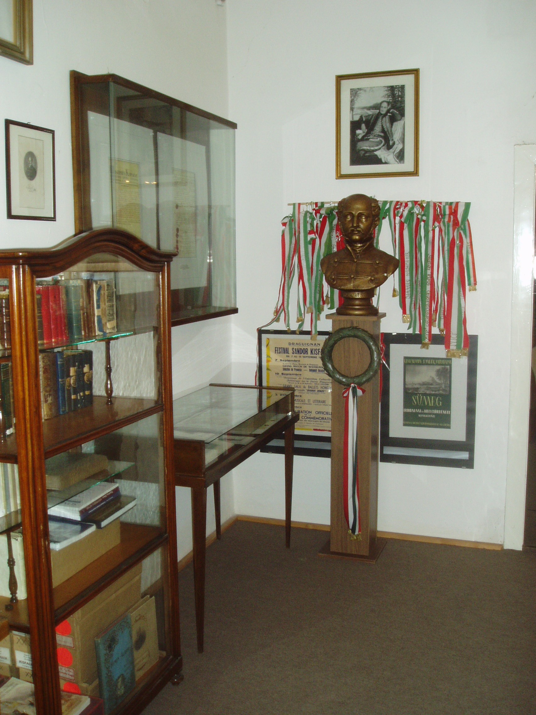 Nyilvános 968 | 1470 | Sümeg, Kisfaludy tér 2. | Ebben a házban, amely ma a Városi Múzeum otthona, született és halt meg Kisfaludy Sándor. A XVII. században épült ház eredetileg a Sándorffy család tulajdona volt, a Kisfaludyakra örökség útján maradt. A XIX. században klasszicizáló stílusban többször is átépítették a boltíves barokk kúriát, ittlakása idején Kisfaludy Sándor is bővíttette. A költő 1772. szept. 27-én látta meg itt a napvilágot. Hat éves volt, amikor a család Tétre költözött (Károly öccse ott született 1788-ban). 1805-ben, házasságkötése után néhány évvel költözött vissza a szülőházába, s haláláig itt volt az otthona. Miután 1832-ben elveszítette szeretett feleségét, Szegedi Rózát, az idős költő újra megnősült, azonban második felesége, Vajda Amália is hamarosan meghalt. A költő ebben a házban halt meg 1844. október 28-án. Sírja a sümegi temetőben van (lásd: Sümeg, Temető). A szülőház 1950 óta múzeum. Szobái közül kettő őrzi egykori híres lakója emlékét. Személyes és családi tárgyai, bútorai, könyvek, képek ismertetik meg a látogatóval a Himfy-versekkel és a balatoni várak romantikus regéit megörökítő műveivel a maga korában nagy népszerűségnek örvendő költő életét és korát. A fénykép 2007 júniusában készült. Felh. irod.: Koppány Tibor - Kozák Károly: Sümeg útikalauz. Veszprém, Idegenforgalmi Hivatal, 1965 Sümegi kalauz. Sümeg, Sümegi Fórum alapítvány, 1993 Kisfaludy Sándor. Veszprém, Veszprém Megyei Múzeumi Igazgatóság. /Pannon Panteon 1./ |