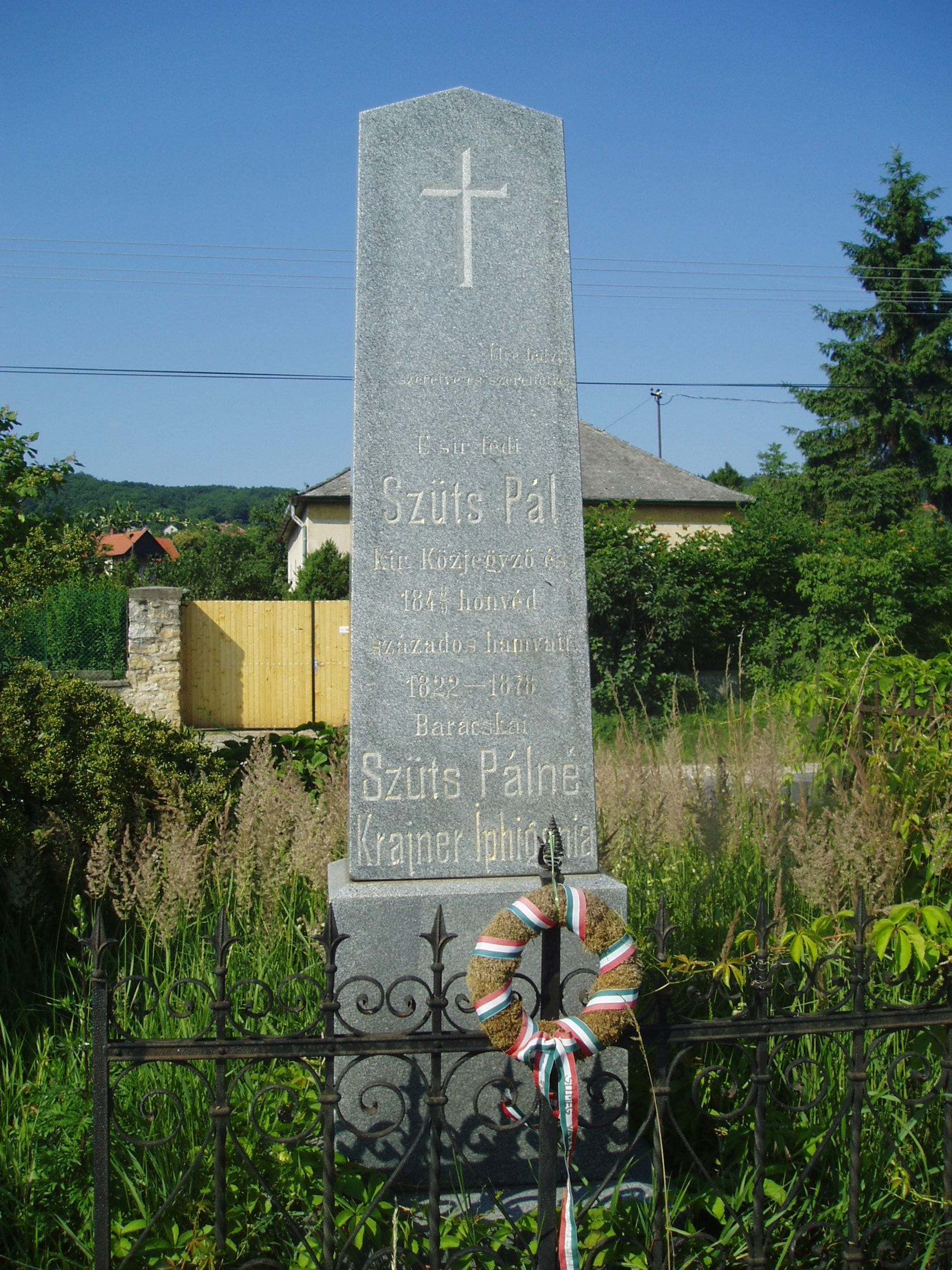 Nyilvános 979 | 1804 | Sümeg, Temető. Szűts Pál sírja | Sümeg délkeleti határában, a Tapolcára vezető út mellett emelkedő lankás domboldalon találjuk a város köztemetőjét. Helyét még Bíró Márton püspök jelölte ki; jelentősebb számban a XIX. század eleje óta kezdtek ide temetkezni. A temetődomb tetején áll az 1816-ban épített, későbarokk stílusú temetőkápolna. Körülötte a sümegi élet utolsó két évszázada szinte valamennyi híres személyiségének sírja fellelhető. Itt nyugszik Szűts Pál (1822-1878) ügyvéd, az 1848/49-es szabadságharc századosa. Alakulatával Perczel tábornok drávai hadtestében, illetve a Központi Mozgó Seregnél harcolta végig a szabadságharcot. A fénykép 2007 júniusában készült. Felh. irod.: Koppány Tibor - Kozák Károly: Sümeg útikalauz. Veszprém, Idegenforgalmi Hivatal, 1965 Sümegi kalauz. Sümeg, Sümegi Fórum Alapítvány, 1993 Miklósi-Sikes Csaba: Kőbe vésett történelem. A sümegi városi temetők története és sírjelei 1950-ig. Sümeg, Sümegi Fórum Alapítvány, 2002 Veszprém megyei életrajzi lexikon. Veszprém, Veszprém Megyei Önkormányzat Közgyűlése, 1998 |