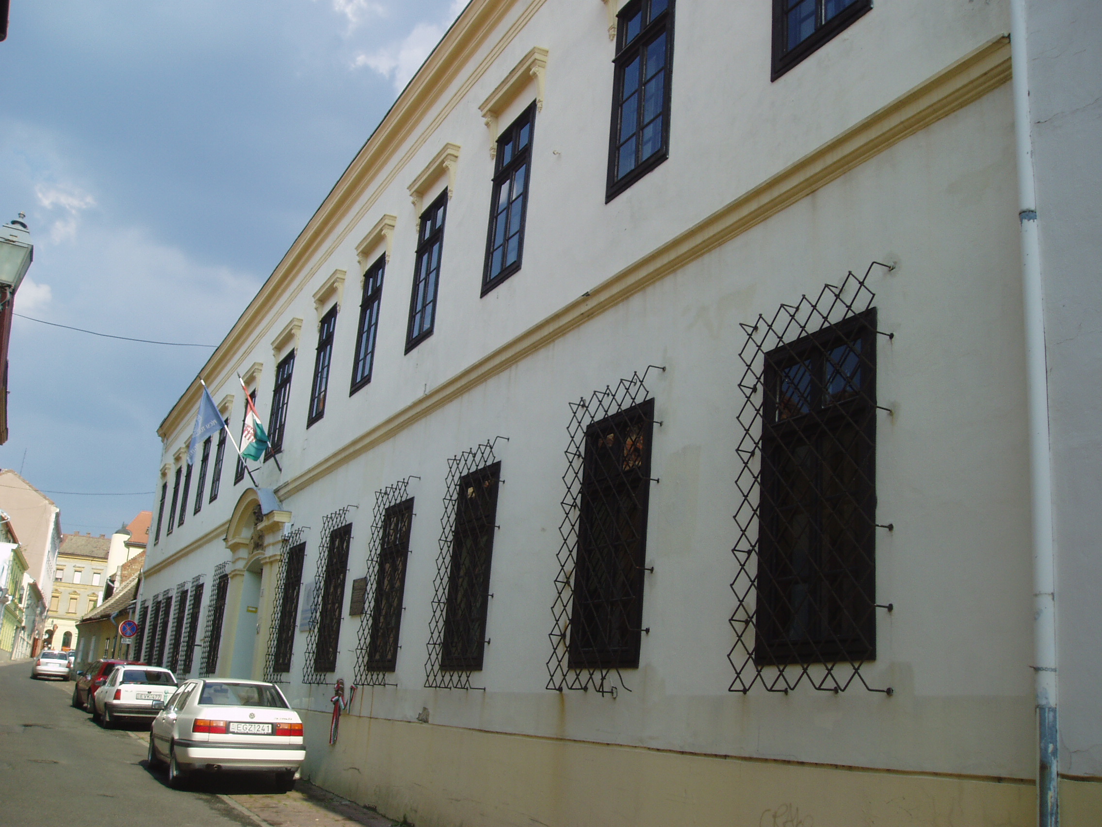Nyilvános 1050 | 1615 | Pécs, Mátyás király utca 15. | Egyemeletes, mai állapotában kora eklektikus épület. Egykori barokk külsejére már csak a kapuja felett lévő címer — Klimó püspök címere — utal. 1743-ban apácazárdának épült, majd főreáliskola, polgári fiúiskola, zeneiskola és zenekonzervatórium lett. Ide járt iskolába 1871-77 között Vikár Béla. A Kalevala kiváló fordítójára az épületen elhelyezett tábla emlékezik. A fénykép 2006. júliusában készült. Felh. irod.: Csorba Csaba: Pécs. Bp. Panoráma, 1983 Takáts Gyula: Vikár Béla emléktáblájánál. = T. Gy.: Egy kertre emlékezve. Bp. 1971, Szépirodalmi Kiadó |