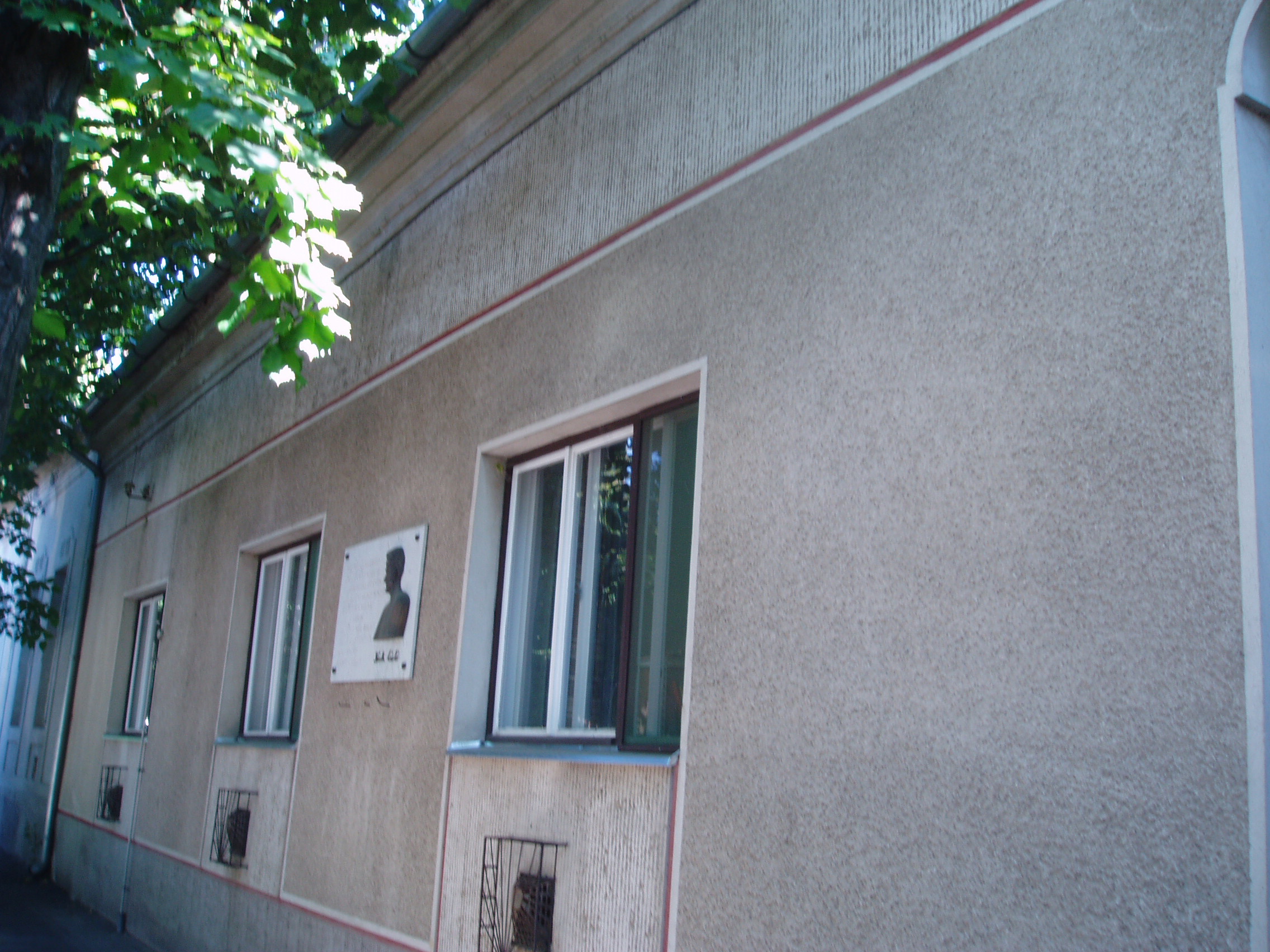 Nyilvános 1354 | 2875 | Hódmezővásárhely, Bercsényi utca 27. | Németh László 1945 szeptemberében Hódmezővásárhelyre költözött, s óraadó tanárként dolgozott a gimnáziumban. 1946 tavaszáig az Andrássy utca 9. számú épület (lásd ott) emeletén lakott, onnét költözött a Kristó-házba, a Bercsényi utca 27. alá. Belépve az udvarra, a ház végében áll a kis kerti lak, amelynek verandáján az első vásárhelyi művek, a "Mathiász panzió" és "A tanügy rendezése" íródtak. Az utcai szobában az "Eklézsia megkövetés" (dráma Misztótfalusi Kis Miklósról), a "Széchenyi", az "Égető Eszter" és más jelentős alkotások születtek. Németh László egykori otthonát ma emléktábla jelöli, rajta az író vallomásos sorai a városról. A fénykép 2007 júliusában készült. Felh. irod.: Grezsa Ferenc: Németh László Vásárhelyen. = www.nlvk.hu/vik/nemethl.htm |