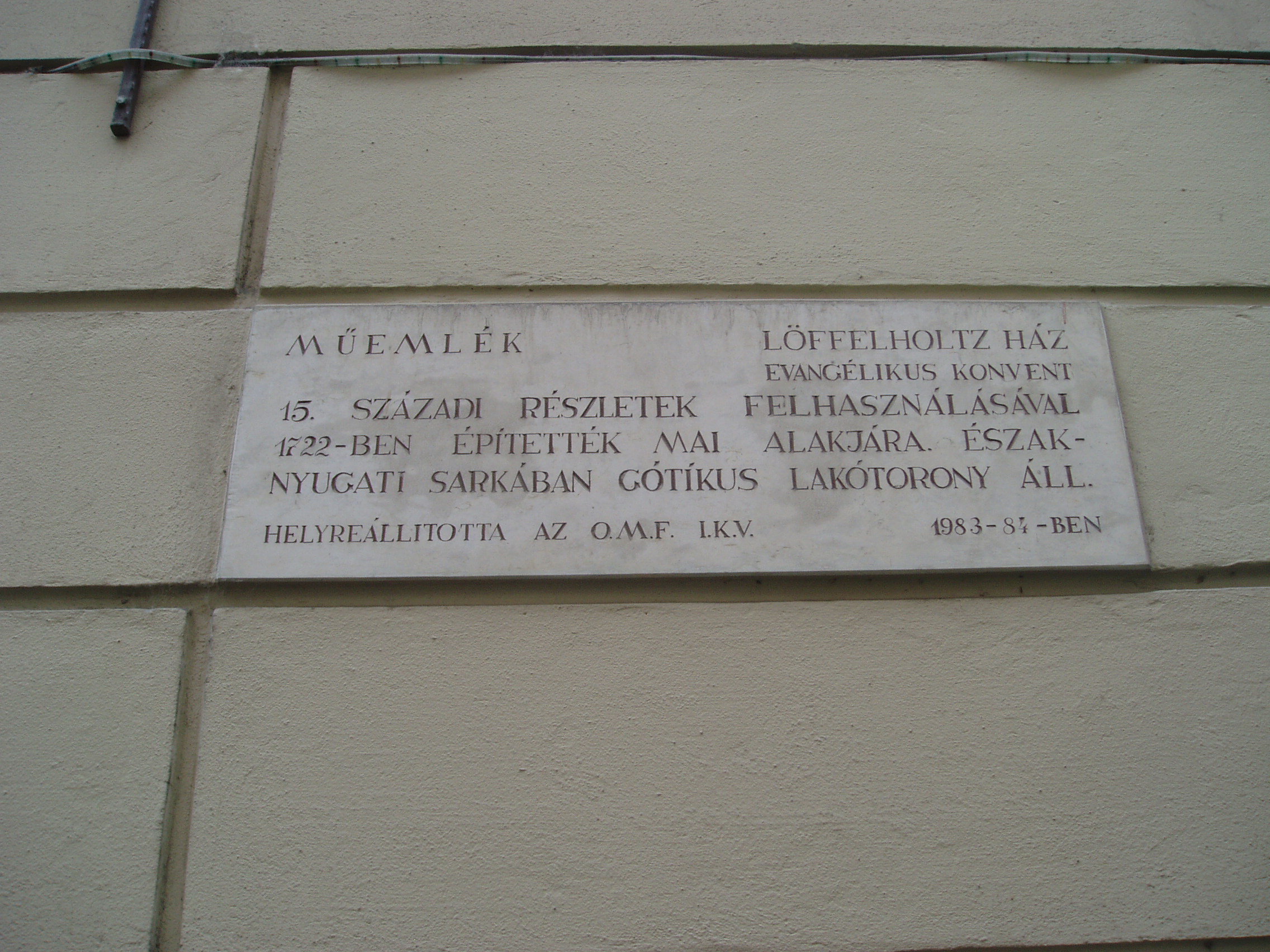 Nyilvános 925 | 1303 | Sopron, Szent György utca 14. Evangélikus konventház. | A középkori eredetű egyemeletes barokk lakóház jelenlegi külsejét a XVIII. század első negyedének vége felé kapta. Ez volt a soproni evangélikus gyülekezet ún. Gemein–Haus épülete, azaz a konventház. Eredetileg a szomszéd házat (lásd: Sopron, Szent György utca 12.) is birtokló Eggenberg hercegné tulajdona volt, aki halálakor az evangélikus egyházra hagyta, amely később azt Löffelholtz bárónénak adta el. A báróné, aki Jókai Mór regényében, A lőcsei fehér asszonyban játszik szerepet, az ingatlant ismét az evangélikus konventre hagyományozta. Udvarában gótikus torony áll. Ebben a házban lakott Wohlmuth János (1643–1724) zeneszerző és orgonaművész. Valószínűleg ő volt a zenetanára Stark Jánosnak, egy helybeli fogadós (lásd: Sopron, Várkerület 55.) fiának. A feltételezések szerint a ma Stark–féle virginálkönyvként számon tartott kézirat táncait és egyéb kisebb darabjait Wohlmuth kottázta le a Stark–fiú számára, mintegy hangszeriskolaként. A katolikus főúr, Esterházy Pál nádor — maga is kiváló muzsikus, a Harmonia Caelestis szerzője — is rá, az evangélikus orgonistára bízta fiai hangszeres tanítását. A kép 2003-ban készült. Felh. irod.: Czellár Katalin: Sopron. 3. jav. kiad. Bp. Panoráma, 2000 Bárdos Kornél: Sopron zenéje a 16–18. században. Bp. Akadémiai Kiadó, 1984 Payr Sándor: Wohlmuth János. = Sopronvármegye, 1929. I–II |