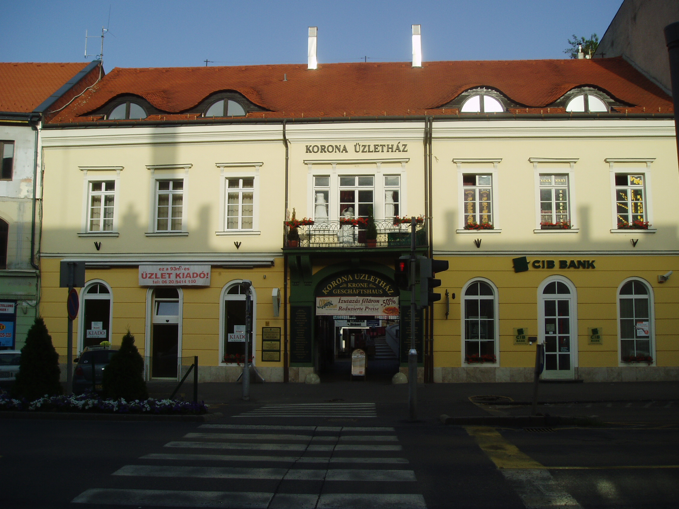 Nyilvános 920 | 2292 | Sopron, Várkerület 73. | A házban egykor vendégfogadó működött, amelyet 1595–1833 között Vörös Ökörnek hívtak, később neve Magyar Király volt. Itt szállt meg 1840-es és 1846-os soproni látogatásakor Liszt Ferenc. Az épületben ma a Korona Üzletház működik. A kép 2008 júniusában készült. Felh. irod.: Czellár Katalin: Sopron. 3. jav. kiad. Bp. Panoráma, 2000 |