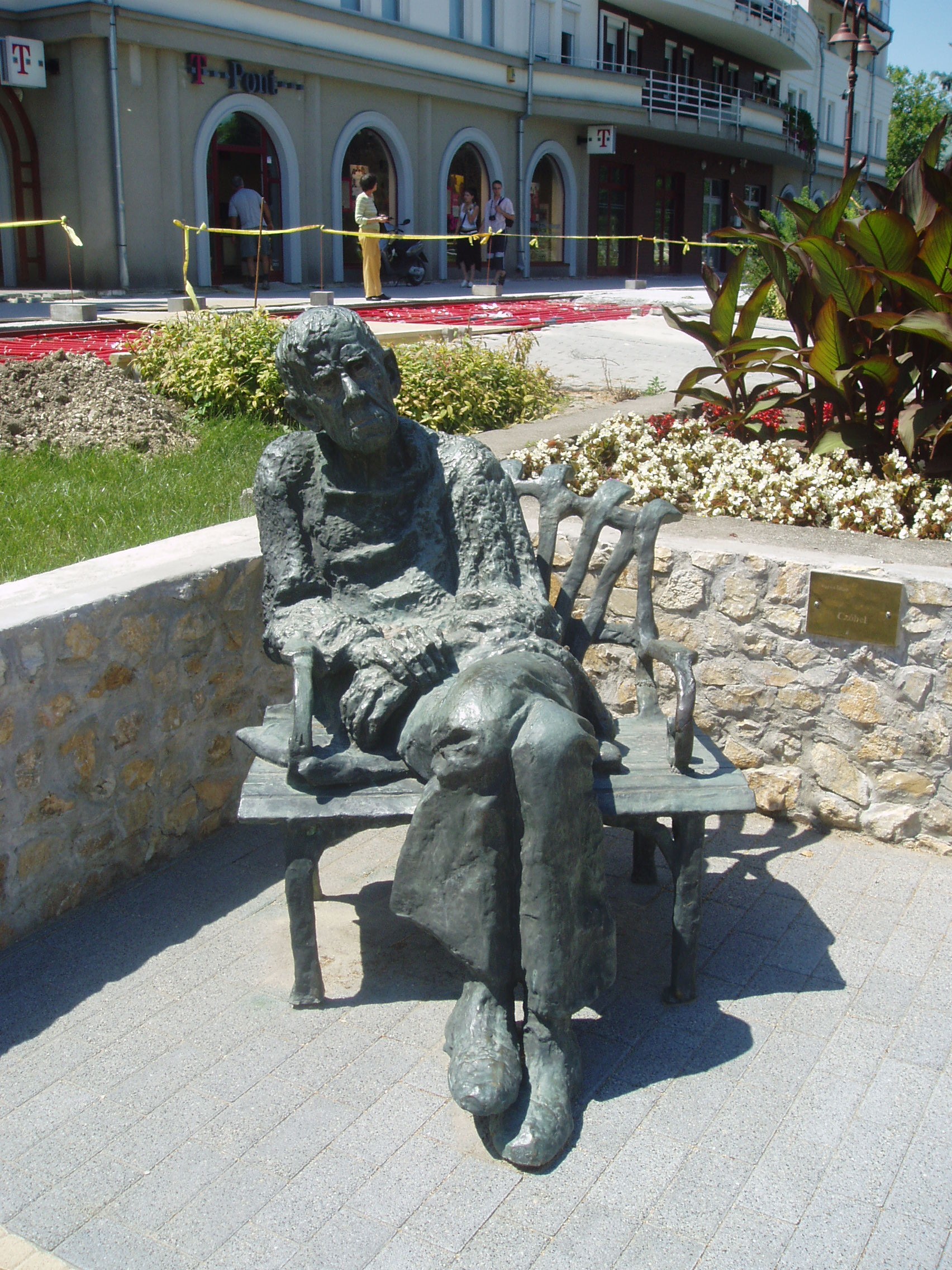 Nyilvános 1083 | 2549 | Siófok, Fő tér: Varga Imre: Czóbel Béla | Varga Imre szobrászművész 1923. november 1-jén született Siófokon. Már gyermekkorában - a siófoki elemi iskolában - rendkívül jó rajzkészségével tűnt ki. 13 évesen szerepelt egy képével Párizsban. A képzőművészet terén elért kimagasló érdemeiért, amellyel Magyarország és Siófok város hírnevét is öregbítette, 1985-ben ő lett Siófok város első díszpolgára. Hazai és külföldi tereken, templomokban, középületekben mintegy 300 alkotását helyezték el. Szobrai állnak Belgiumban, Franciaországban, Lengyelországban, Németországban, Norvégiában és Izraelben. Siófokon a Fő téren szabadtéri szoborkiállítása látható. Czóbel Béla festőművészről készített egészalakos szobrának első példányát Szentendrén, a Czóbel Múzeum (lásd: Pest megye/Szentendre, Templom tér 1.) előtt helyezték el. A fénykép 2006 júliusában készült. Felh. irod.: http://www.siofok.com/uj/object/varga-hu.html |