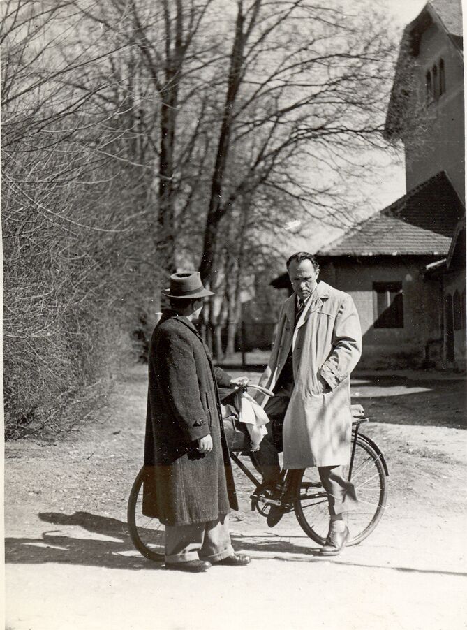 Nyilvános 1473 | 3065 | Vértes Imre tanár úr jellegzetes elgondolkozó pózában látható a Mozikertben, a félig háttal álló kalapos ember – a tanítvány, a képet beküldő dr. Cserfalvi Tamás édesapja – Cserfalvi József. A kép 1954-55-környékén készülhetett. | |