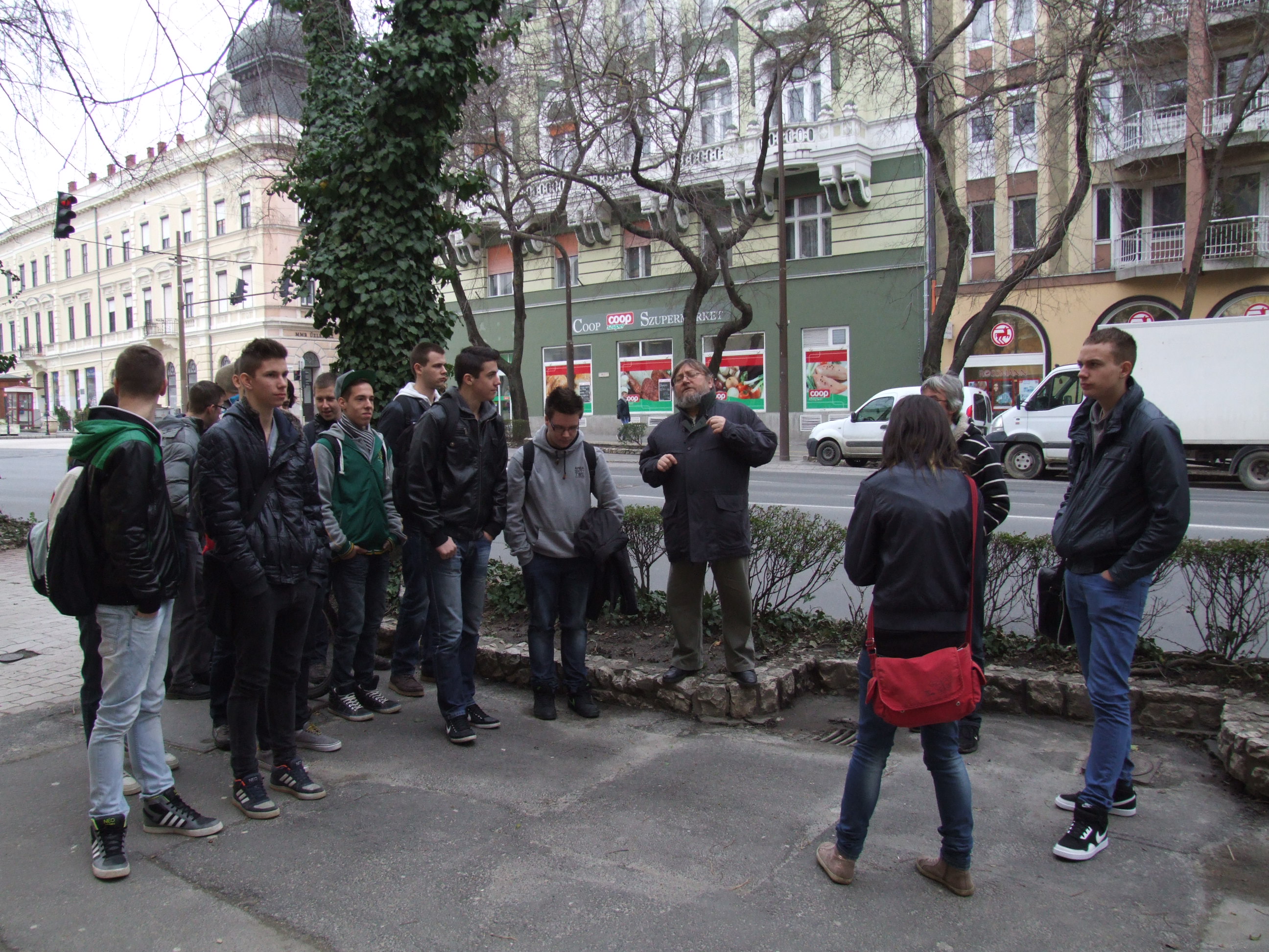 2014.03.05. Cserháti iskolások (10.c) a Korona szállónál 08.JPG