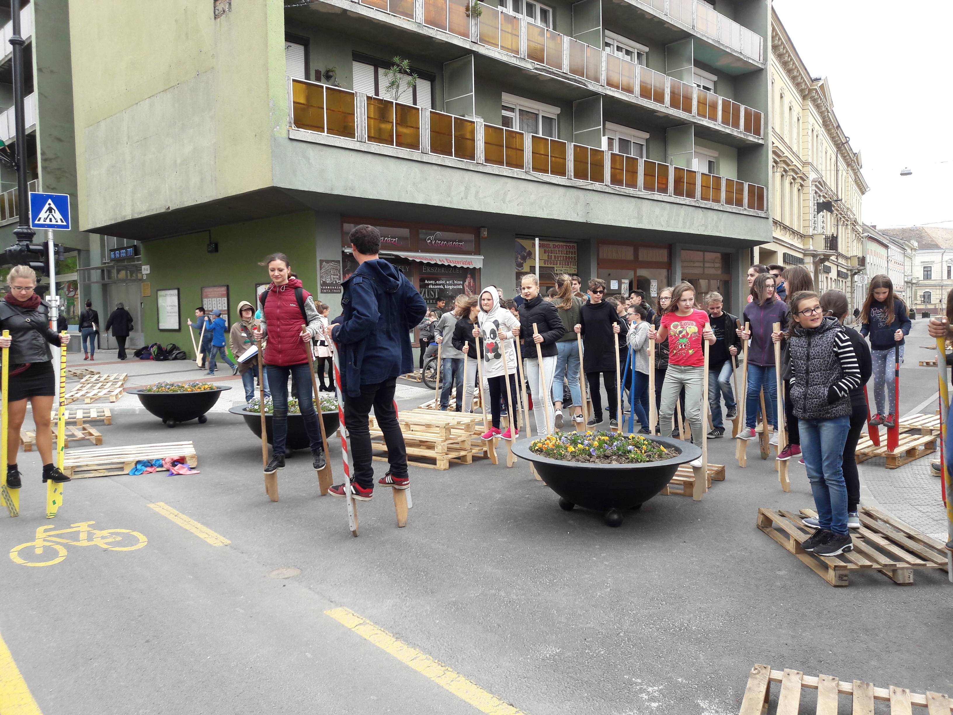2017.04.27. Tömeges gólyalábra állás a Fő út - Ady u. kereszteződésében