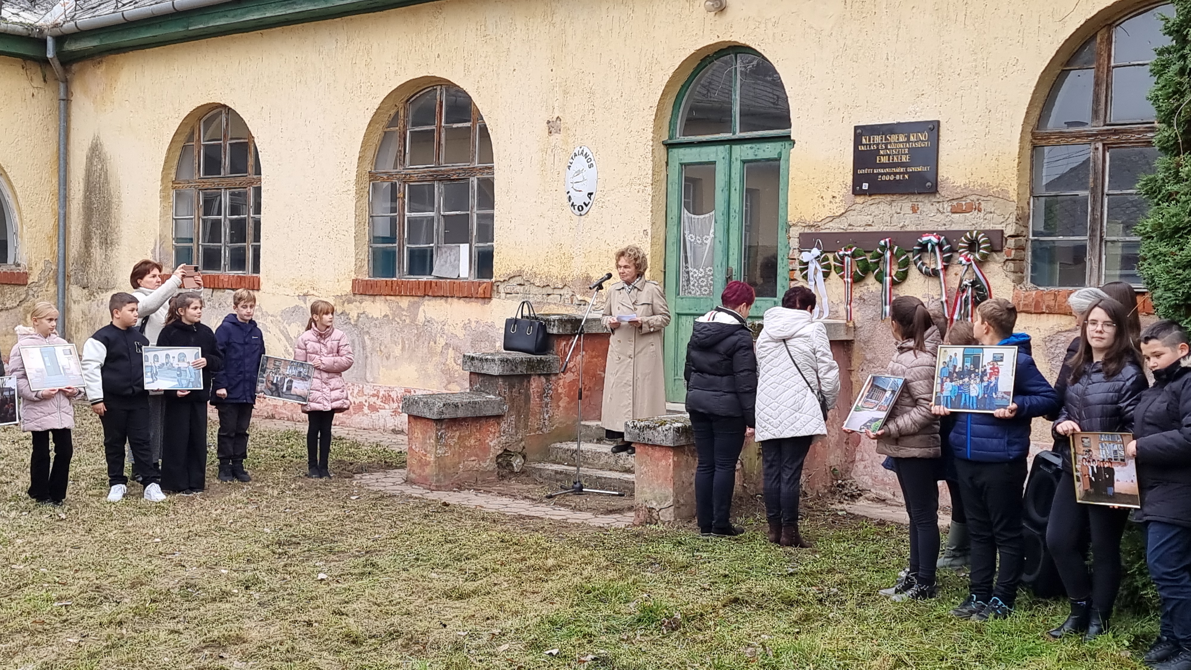 2025.11.11. Klebelsberg Kunó emléktábla koszorúzás és QR-kód felragasztás