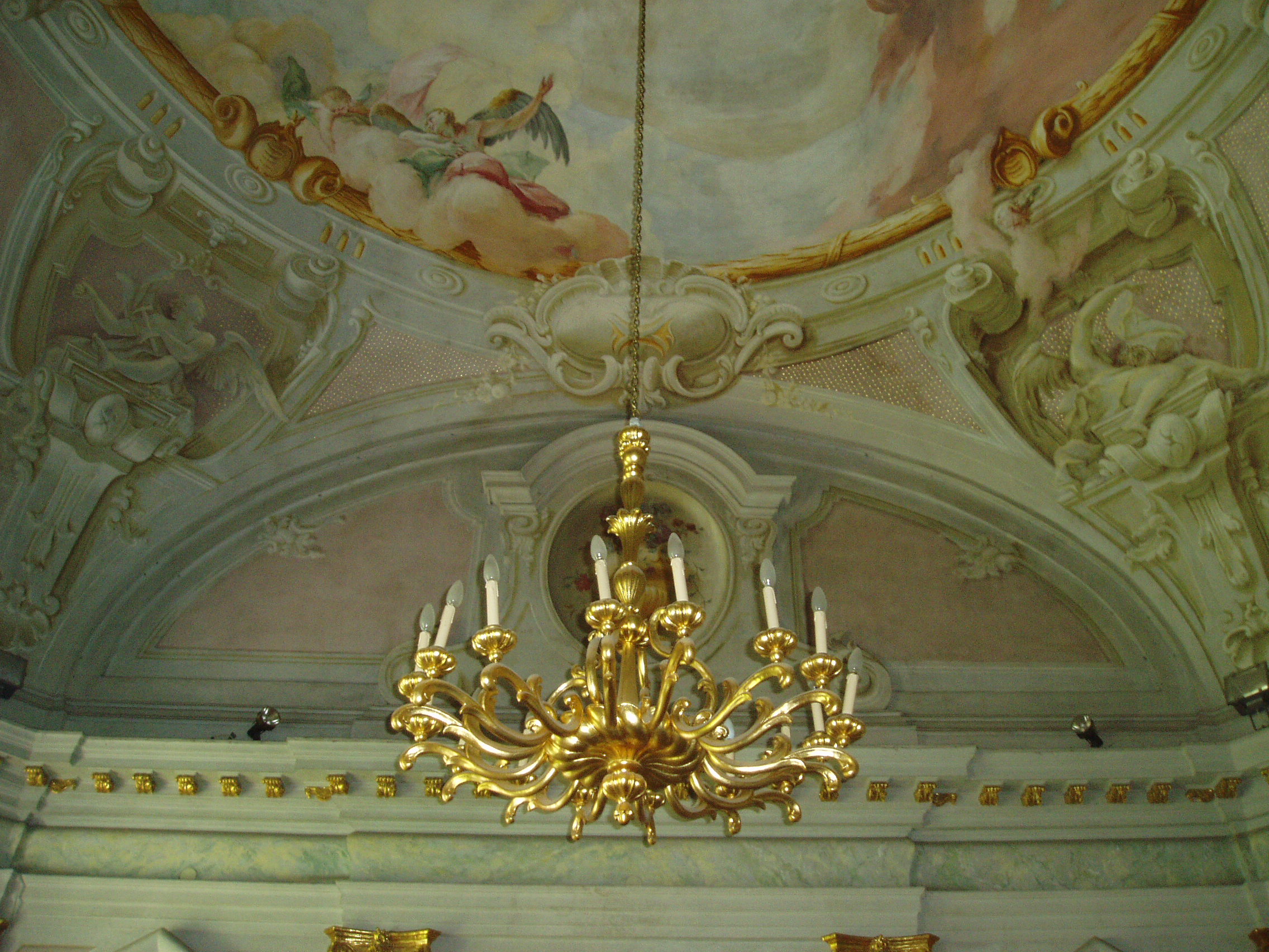 Nyilvános 1125 | 2750 | Pápa, Fő tér 1-3. Esterházy-kastély | A barokk kastély a korábban itt állott végvár helyére épült, részben annak alapfalai, kövei felhasználásával. A régi várat az 1740-es évektől Esterházy Ferenc (1683–1754) tárnokmester kezdte átalakítani Franz Anton Pilgram tervei alapján. A barokk várkastély kialakítása 1784-re fejeződött be Esterházy Ferenc fia, Eszterházy Károly egri püspök idejében Fellner Jakab, majd Grossmann József vezetésével. Az U alakú, egyemeletes épület a versailles-i palota nyomán elterjedt francia kastélytípus képviselője. Az épület keleti szárnyának emeletén volt a kastély kápolnája. Az 1988/89-ben végzett restaurálás eredményeképpen ma újra megcsodálható a helyiség eredeti architektúrája és Joseph Ignaz Mildorfer 1750 körül festett mennyezetképe, amely Krisztus mennybemenetelét ábrázolja. A kápolnában, amelynek példaszerű felújításáért a város 1990-ben Europa Nostra díjat kapott, ma a Jókai Mór Városi Könyvtár olvasóterme működik. A fénykép 2007 áprilisában készült. Felh. irod.: Németh Adél - Szabó Lajos: Pápa. Bp. Panoráma, 1989 Pápa. Szerk. Sz. Farkas Aranka. Bp., Magyar Képek, 2000 |