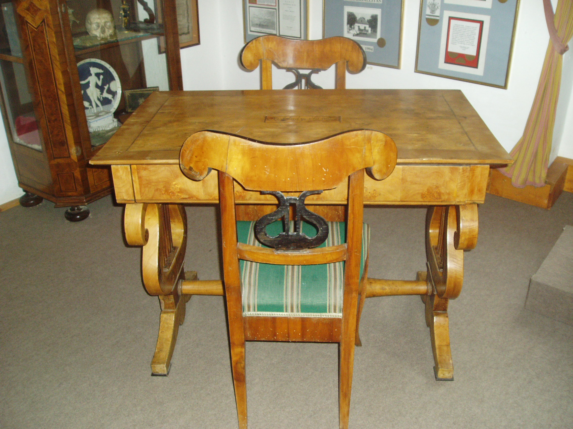 Nyilvános 1007 | 1462 | Sümeg, Kisfaludy tér 2. | Ebben a házban, amely ma a Városi Múzeum otthona, született és halt meg Kisfaludy Sándor. A XVII. században épült ház eredetileg a Sándorffy család tulajdona volt, a Kisfaludyakra örökség útján maradt. A XIX. században klasszicizáló stílusban többször is átépítették a boltíves barokk kúriát, ittlakása idején Kisfaludy Sándor is bővíttette. A költő 1772. szept. 27-én látta meg itt a napvilágot. Hat éves volt, amikor a család Tétre költözött (Károly öccse ott született 1788-ban). 1805-ben, házasságkötése után néhány évvel költözött vissza a szülőházába, s haláláig itt volt az otthona. Miután 1832-ben elveszítette szeretett feleségét, Szegedi Rózát, az idős költő újra megnősült, azonban második felesége, Vajda Amália is hamarosan meghalt. A költő ebben a házban halt meg 1844. október 28-án. Sírja a sümegi temetőben van (lásd: Sümeg, Temető). A szülőház 1950 óta múzeum. Szobái közül kettő őrzi egykori híres lakója emlékét. Személyes és családi tárgyai, bútorai, könyvek, képek ismertetik meg a látogatóval a Himfy-versekkel és a balatoni várak romantikus regéit megörökítő műveivel a maga korában nagy népszerűségnek örvendő költő életét és korát. Az első szoba eredeti relikviái a költő által használt asztal és két szék. A fénykép 2007 júniusában készült. Felh. irod.: Koppány Tibor - Kozák Károly: Sümeg útikalauz. Veszprém, Idegenforgalmi Hivatal, 1965 Sümegi kalauz. Sümeg, Sümegi Fórum alapítvány, 1993 Kisfaludy Sándor. Veszprém, Veszprém Megyei Múzeumi Igazgatóság. /Pannon Panteon 1./ |