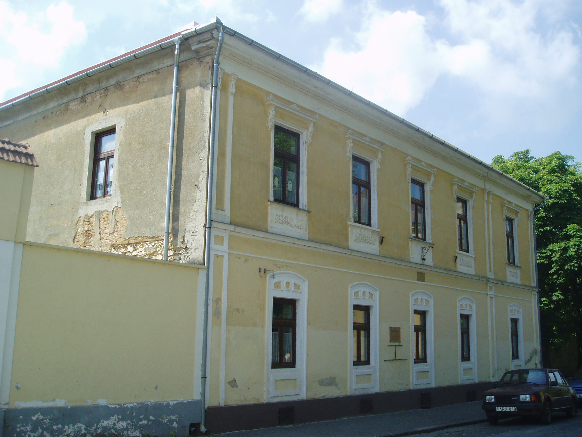 Nyilvános 1086 | 1851 | Sümeg, Ramassetter utca 10. | A Ramasetter utca házai jórészt a XVII. század második felében épültek, bár a legtöbbet később átalakították. A 10. számú épület is barokk stílusú, földszintes ház volt eredetileg, amelyre később emeletet építettek, s homlokzatát eklektikus stílusban átalakították. Az épület homlokzatán olvasható emléktábla szerint ebben a házban élt és halt meg Ramassetter Vince, "Sümeg atyja". Ramassetter Vincének a városban egészalakos szobra (lásd: Sümeg, Kossuth u. 13.) és több emléktáblája is látható, köztük a közelben álló szülőházán is (lásd: Sümeg, Deák F. u. 6.). A város jótevője a helyi köztemetőben nyugszik (lásd: Sümeg, Temető: Ramassetter Vince sírja). A fénykép 2007 júniusában készült. Felh. irod.: Koppány Tibor - Kozák Károly: Sümeg útikalauz. Veszprém, Idegenforgalmi Hivatal, 1965 Veszprém megyei életrajzi lexikon. Veszprém, Veszprém Megyei Önkormányzat Közgyűlése, 1998 www.ekmk.hu/emlekhely/Emlekhelyek.html |