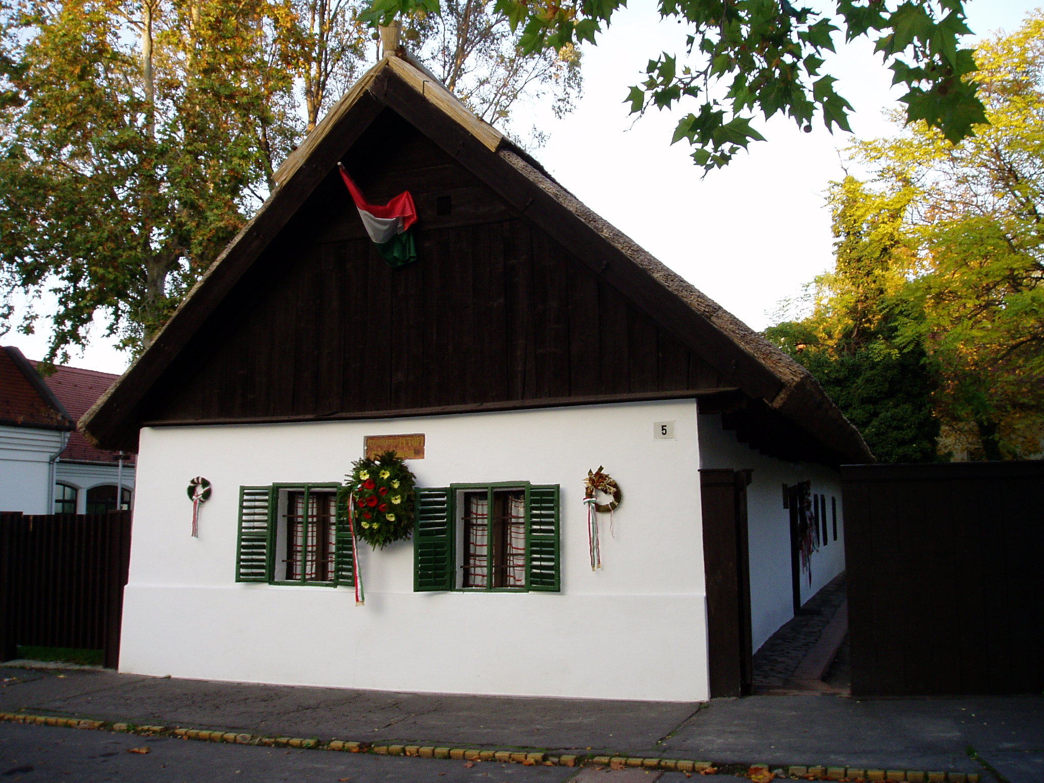 Nyilvános 1191 | 1918 | Kiskőrös, Petőfi tér 5. Petőfi Sándor szülőháza | A népi stílusú lakóház 1790 körül épült. A nádfedeles, deszkaoromzatú, már nem új házat Petrovics István hentes és mészáros 1821-ben vette bérbe, s felesége, Hrúz Mária itt szülte első gyermeküket, Sándort. Az 1790 körül épült zsellérházban kapott helyet a Petőfi Emlékmúzeum. A ház homlokzati márványtábláján ez olvasható: "Itt született Petőfi 1822. december 31-én". A bejárati ajtó szemöldökfája felett a költő sorait olvashatjuk: "Szent a küszöb, melyen beléptem én, / Oh szent a szalma kunyhók küszöbe. / Mert itt születnek a nagyok, az ég / A megváltókat ide küldi be." A ház konyhájában korabeli használati tárgyak láthatók. Az utcai szoba a Petrovics család bútoraival és egykori használati tárgyaival emlékeztet arra, hogy ott született a nemzet nagy költője. A képen látható ágyat az elszegényedett Petrovics család annakidején Dömösön eladta más bútorokkal együtt, s 1890-ben a Magyar Írók és Művészek Társasága kutatta fel és vásárolta meg. A fénykép 2004 októberében készült. Felh. irod.: Látnivalók Bács-Kiskun megyében. /Vendégváró/. Well-Press Kiadó, 2002. Petőfi emlékhelyek a Kárpát-medencében. Kiskőrös, Petőfi Sándor Társaság, 1996 |