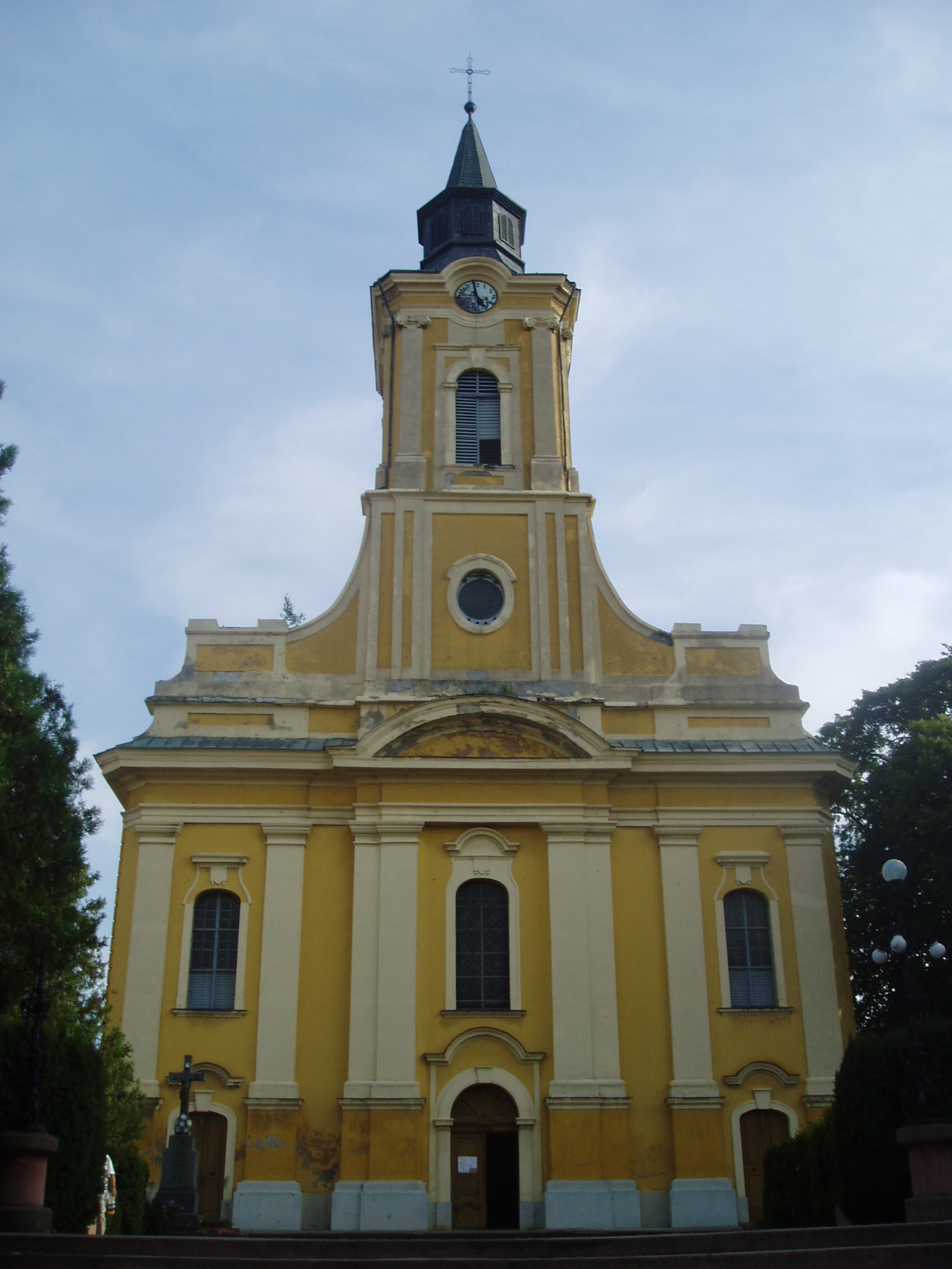 Nyilvános 1058 | 1615 | Sátoraljaújhely, Széchenyi tér: Nagytemplom | A későbarokk stílusú épület helyén a Szent Imréről elnevezett templom állt. A mai templom a többszöri tűzvész, átépítés és a katolikusok, reformátusok közötti birtoklás után, 1768 és 1798 között épült fel. Jelenlegi formáját a XX. század elején végzett bővítések során kapta. Főoltárát Hild Lipót készítette. A templom nyugati falánál áll Szent Flórián, a tűzoltók, kéményseprők, kovácsok, serfőzők védőszentjének szobra. A Nagytemplom és a Kossuth-szobor között az ún. Nimfás-kút csörgedezteti a hegyekből lefutó Dörzsik-forrás vizét. A fénykép 2007 augusztusában készült. Felh. irod.: Látnivalók Borsod-Abaúj-Zemplén megyében. Miskolc, Well-PRess, 2003 |