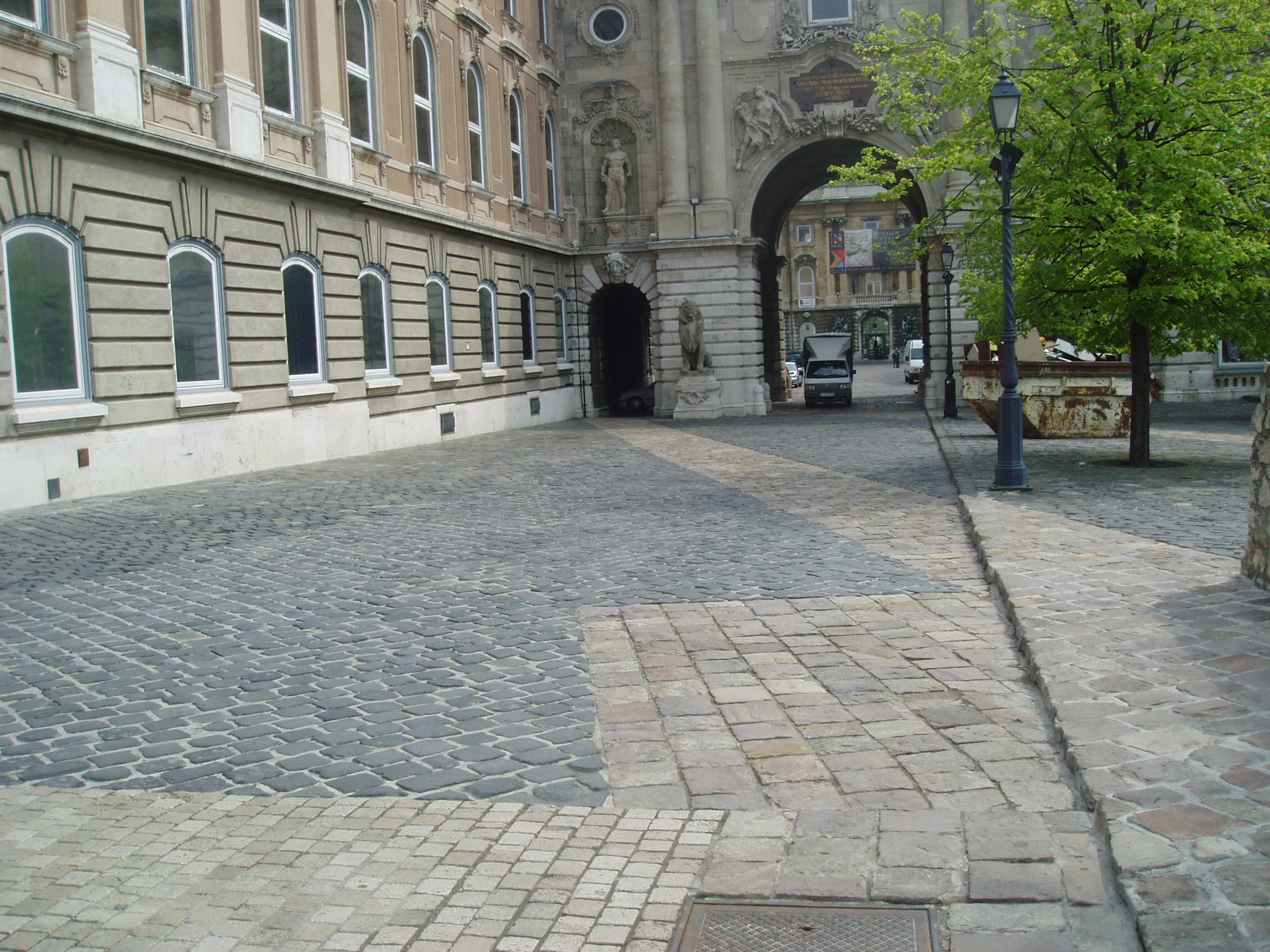 Budapest, 01. Szent György tér: Budavári Palota 21 Oroszlános kapu előtt kövezet.jpg