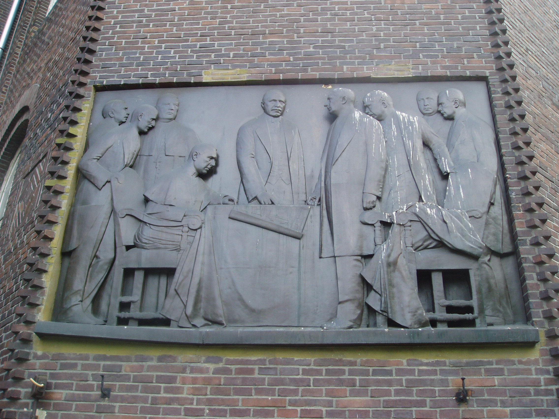 Nyilvános 1065 | 1662 | Szeged, Rerrich tér | A Fogadalmi templommal szinte összeforrott a két világháború közötti időszak legszebb magyar építészeti alkotása, a Rerrich Béla által tervezett árkádos épületcsoport, amely U alakban fogja össze a Bálint Sándor által legartisztikusabb hazai modern térkompozíciónak minősített Dóm teret. A Dóm építésével egyidejűleg merült fel az igény, hogy hangolják össze az egyetemi, illetve püspökségi épületeket. A tér megkomponálására Klebelsberg Kunó kultuszminiszter 1927-ben írt ki pályázatot, amelyet Rerrich Béla nyert meg. Az épületegyüttes kialakítását 1928-ban kezdték meg. Az égetett, klinkertéglából készült téregyüttest az északeurópai országok építészete ihlette, Rerrich mintája valószínűleg a stockholmi városháza volt. Az épületegyüttes nyugati részein egyetemi kollégium és hittudományi főiskola, délnyugati részein püspöki székház, déli és keleti szárnyán pedig természettudományi és orvosi egyetemi intézetek foglalnak helyet. A tér kialakításának emlékére emléktáblát állítottak. A rajta látható személyek balról jobbra: Korb Flóris építész, Gaál Endre kultúrtanácsnok, Várhelyi József, a Dóm első plébánosa, Glattfelder Gyula megyéspüspök, Somogyi Szilveszter polgármester, Klebelsberg Kunó kultuszminiszter, Aigner Károly főispán, Tóth Károly rektor, Rerrich Béla építész. A fénykép 2007 júliusában készült. Felh. irod.: Péter László: Szeged. Bp. Panoráma, 1981 Bálint Sándor: Szeged városa. Bp. Képzőműv. Alap, 1959 |