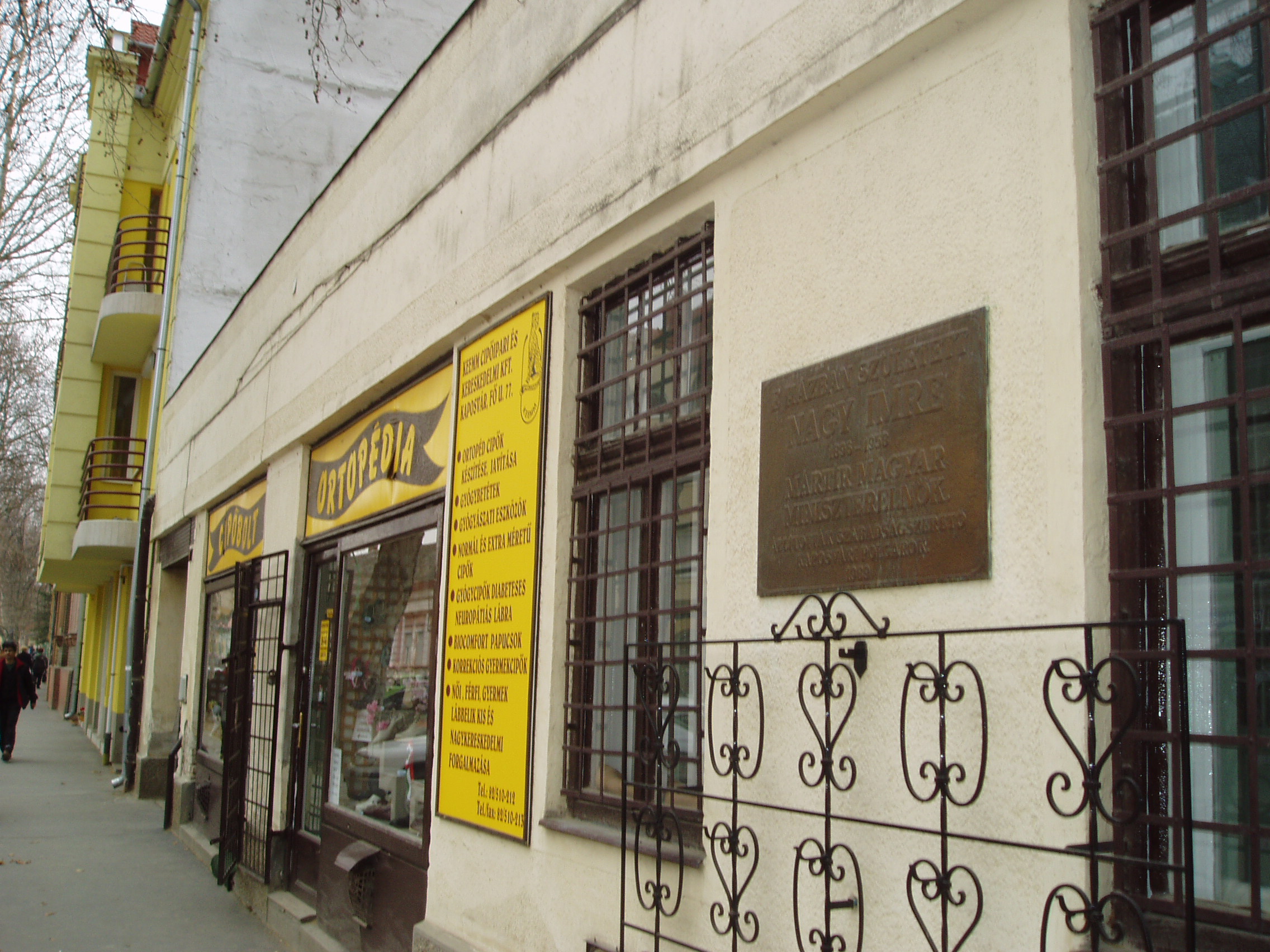 Nyilvános 1161 | 2159 | Kaposvár, Fő utca 77. | Kaposvár hosszú főutcájának a városközponttól távolabbi részén ma is álló kis házban született Nagy Imre mártír miniszterelnök 1896. június 7-én. Emléktábláját 1989-ben, rehabilitálásának évében helyezték el. 1996-ban, a forradalom 40. évfordulójára szobrot is állítottak emlékére a Megyeháza előtt, az 56-os emlékmű mellett (Paulkovics István alkotása). Nagy Imre református szegényparaszti családból származott. Apja postai szerelőmunkás volt. Anyja, mielőtt férjhez ment volna, a somogyi alispánnál cselédlányként szolgált. Tanulmányait a 4 elemi (lásd: Kaposár, Fő u. 44.) és a 4 polgári osztályig végezte, mert 1912-ben saját elhatározásból elhagyta kaposvári gimnáziumot és géplakatos segédnek állt. A segédi oklevelet 1914-ben szerzete meg, majd a tanulmányait folytatandó beiratkozott a kaposvári felső kereskedelmi iskolába. Ezt már nem tudta elvégezni, mert 1915 májusában behívták katonának. A Monarchia katonájaként 1918-ban az orosz fronton fogságba esett. Politikai pályafutása ekkoriban kezdődött el. A fénykép 2006 márciusában készült. Felh. irod.: Látnivalók Somogy megyében. Miskolc, Well-PRess, 2000 hu.wikipedia.org/wiki/Nagy Imre |