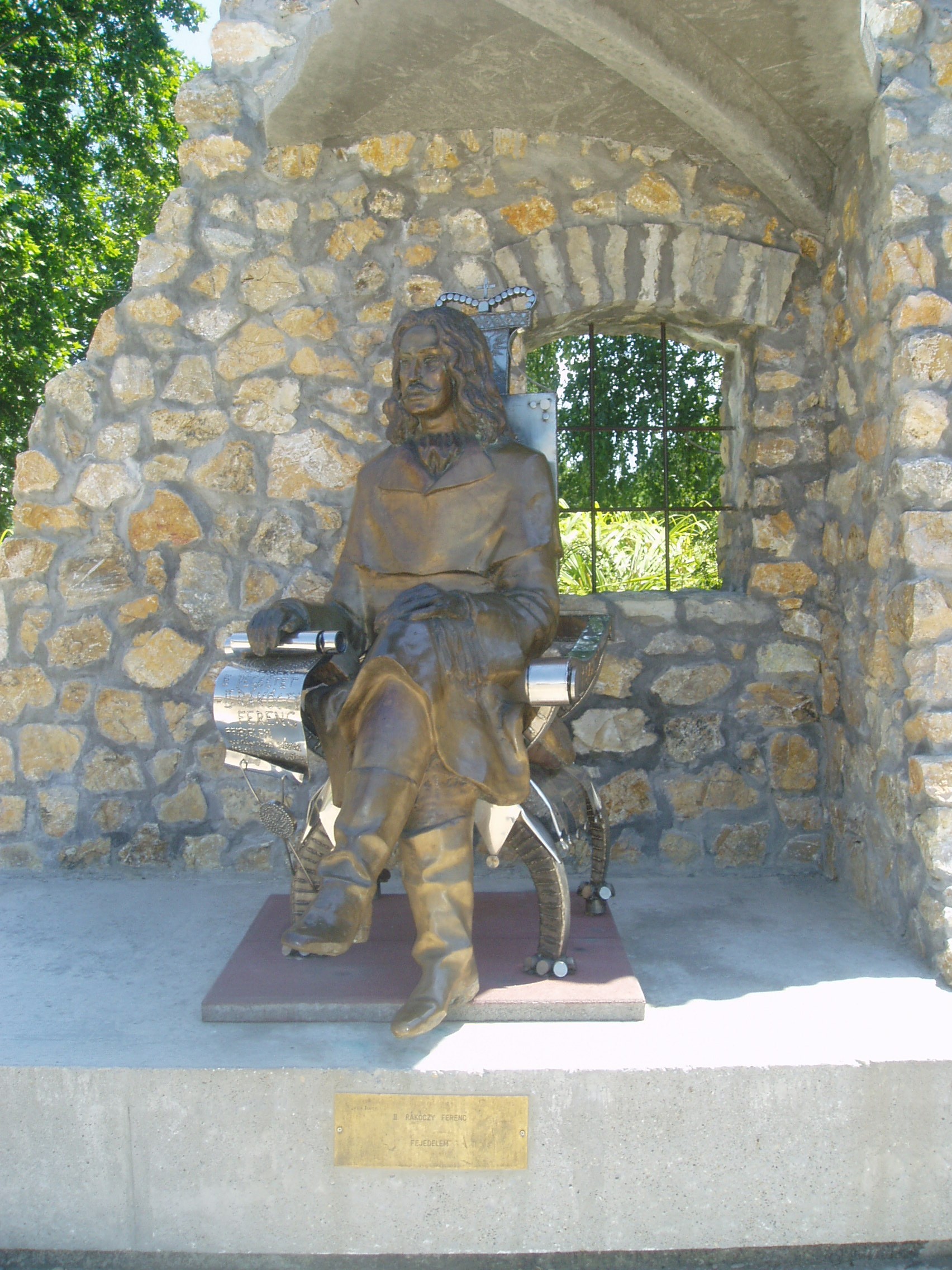 Nyilvános 1166 | 2311 | Siófok, Fő tér: Varga Imre: II. Rákóczi Ferenc | Varga Imre szobrászművész 1923. november 1-jén született Siófokon. Már gyermekkorában - a siófoki elemi iskolában - rendkívül jó rajzkészségével tűnt ki. 13 évesen szerepelt egy képével Párizsban. A képzőművészet terén elért kimagasló érdemeiért, amellyel Magyarország és Siófok város hírnevét is öregbítette, 1985-ben ő lett Siófok város első díszpolgára. Hazai és külföldi tereken, templomokban, középületekben mintegy 300 alkotását helyezték el. Szobrai állnak Belgiumban, Franciaországban, Lengyelországban, Németországban, Norvégiában és Izraelben. Siófokon a Fő téren szabadtéri szoborkiállítása látható. II. Rákóczi Ferencet ábrázoló szoborkompozíciója arra emlékeztet, hogy a "Nagyságos Fejdelem" 1705-ben pecsétet adományozott Siófoknak. A szobrot 1998. december 19-én állították fel a Dél-balatoni Kulturális Központ belső udvarában, majd 2005-ben, a pecsétadományozás 300. évfordulóján került végleges helyére, a város Fő terére. A fénykép 2006 júliusában készült. Felh. irod.: http://www.siofok.com/uj/object/varga-hu.html |