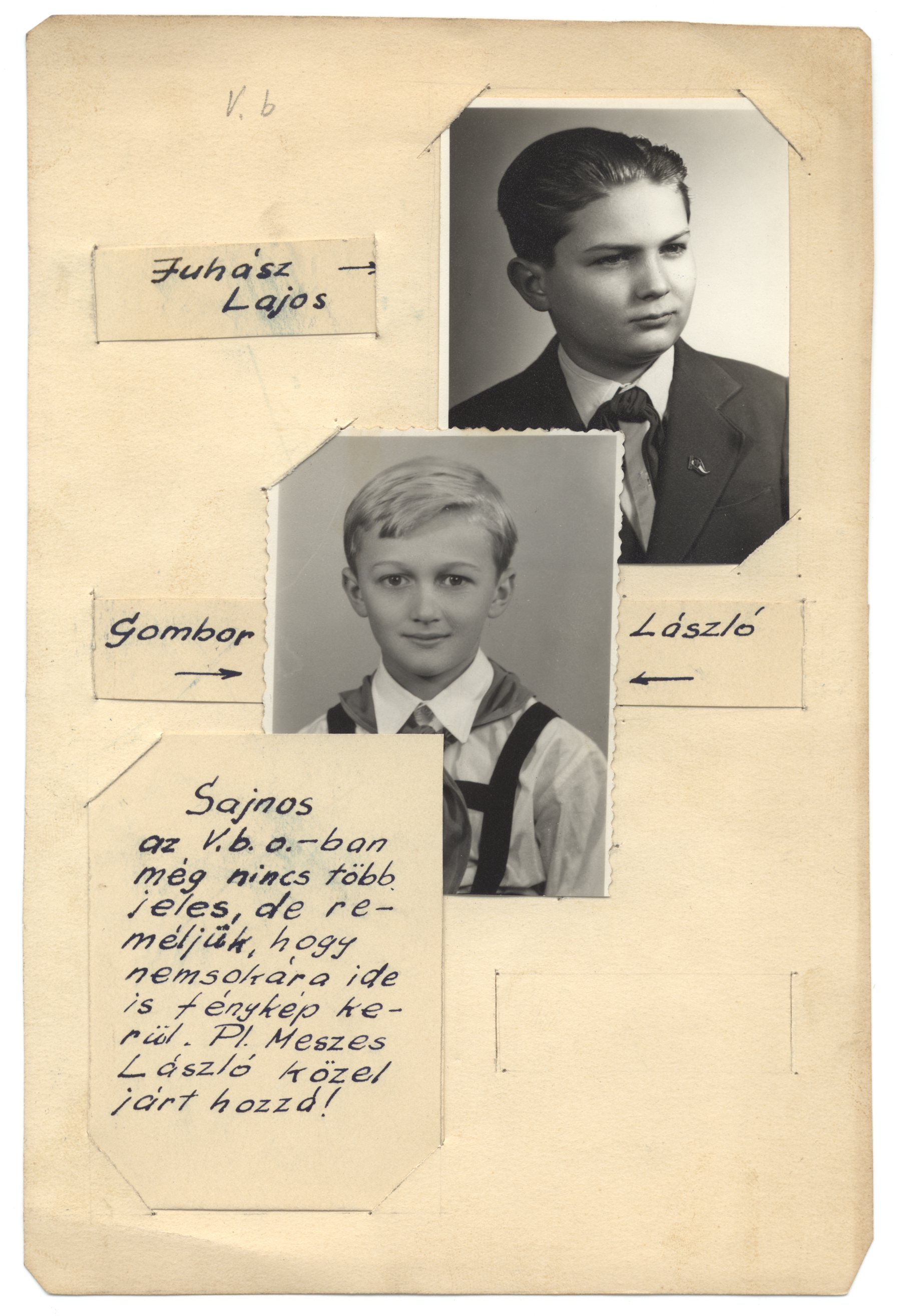 Nyilvános 1367 | 2398 | Zrínyi Iskola - Album a példamutató tanulókról | V.b Juhász Lajos Gombor László Sajnos az V.b.o.-ban még nincs több jeles, de reméljük, hogy nemsokára ide is fénykép kerül. Pl. Meszes László közel járt hozzá! |
