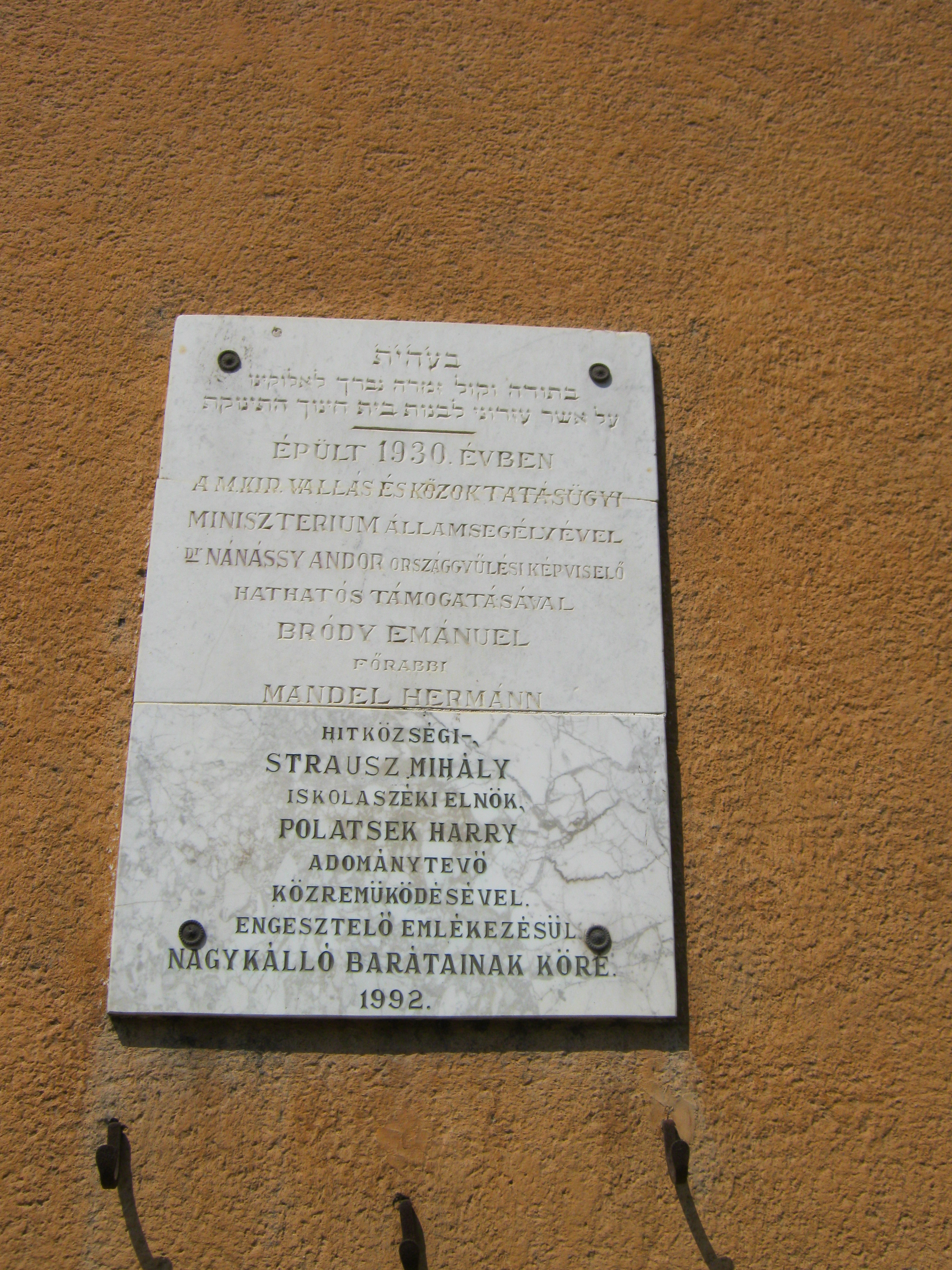 Nyilvános 1015 | 1393 | Nagykálló, Nagybalkányi út 7. | Az egykori Izraelita iskola 1930-ban közadakozásból épült. Létesítéséhez anyagilag jelentősen hozzájárult Pollatsek Harry Amerikába vándorolt kállói ügyvéd. 1944-ben itt alakították ki a gettót, innen hurcolták el a kállói zsidóság nagy részét. Felh. irod.: Harsányi Gézáné: Kálló kincsei. Nagykálló, 2007 A fénykép 2010 augusztus elején készült. |