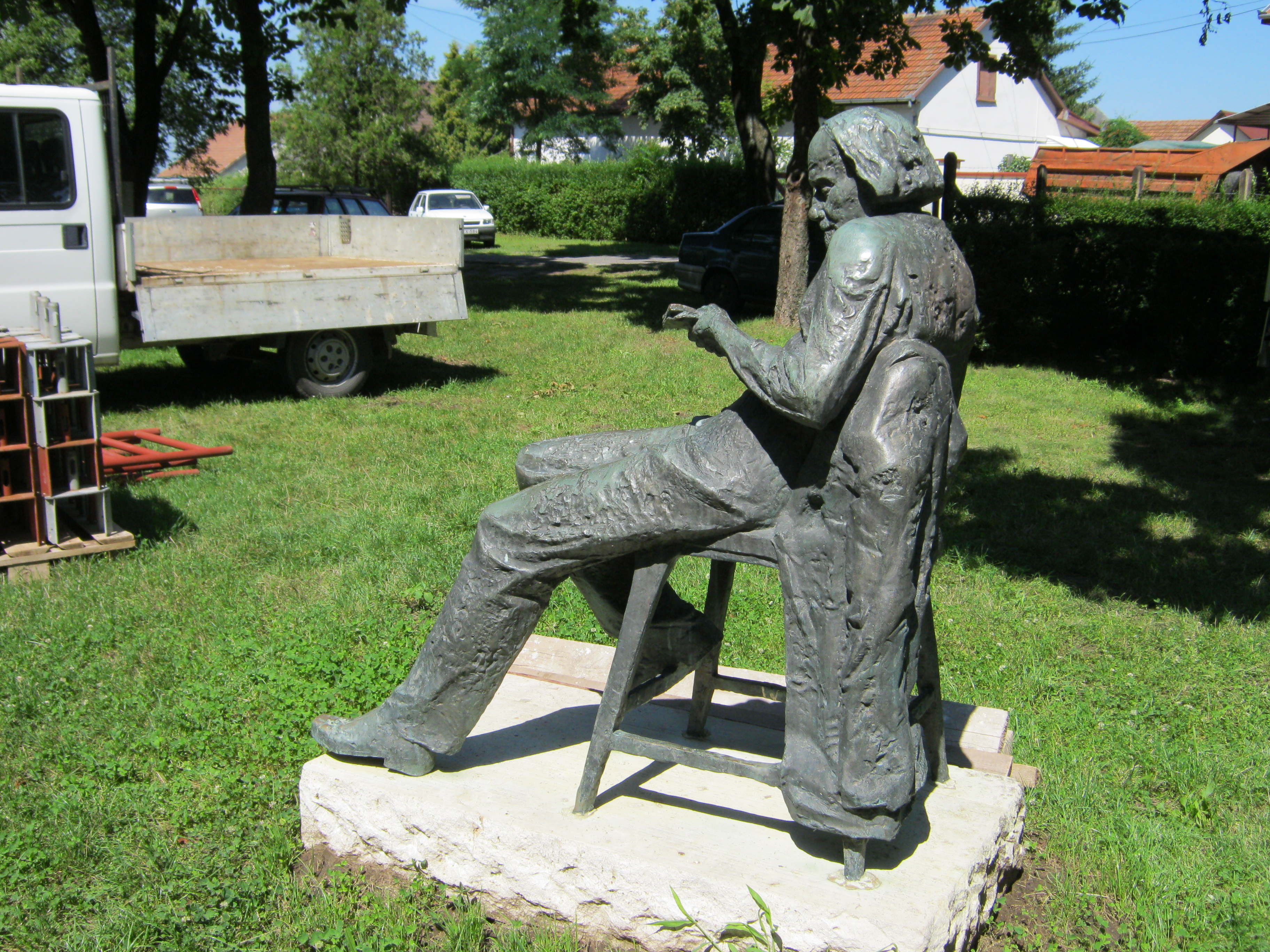 Nyilvános 1060 | 1454 | Nyírbátor, Báthori utca 24. mögött: Kodály Zoltán | A református templom háta mögött két zeneszerző szobra látható. Kodály Zoltán egészalakos ülő szobrát, Kirchmayer Károly alkotását 1983-ban állították fel. Nem találtam erre vonatkozó információt, de a szobornak valószínűleg köze van a Nyírbátori Zenei Napokhoz. A református templomban, mint ideális helyszínen többször felhangzott Kodály Psalmus Hungaricusa. Az egyik előadást - Simándy József tenorszólójával - televíziós felvétel is megörökítette. Felh. irod.: www.szoborlap.hu A fénykép 2010 augusztus elején, amint látható is, a templom helyreállítási munkálatai idején készült. |