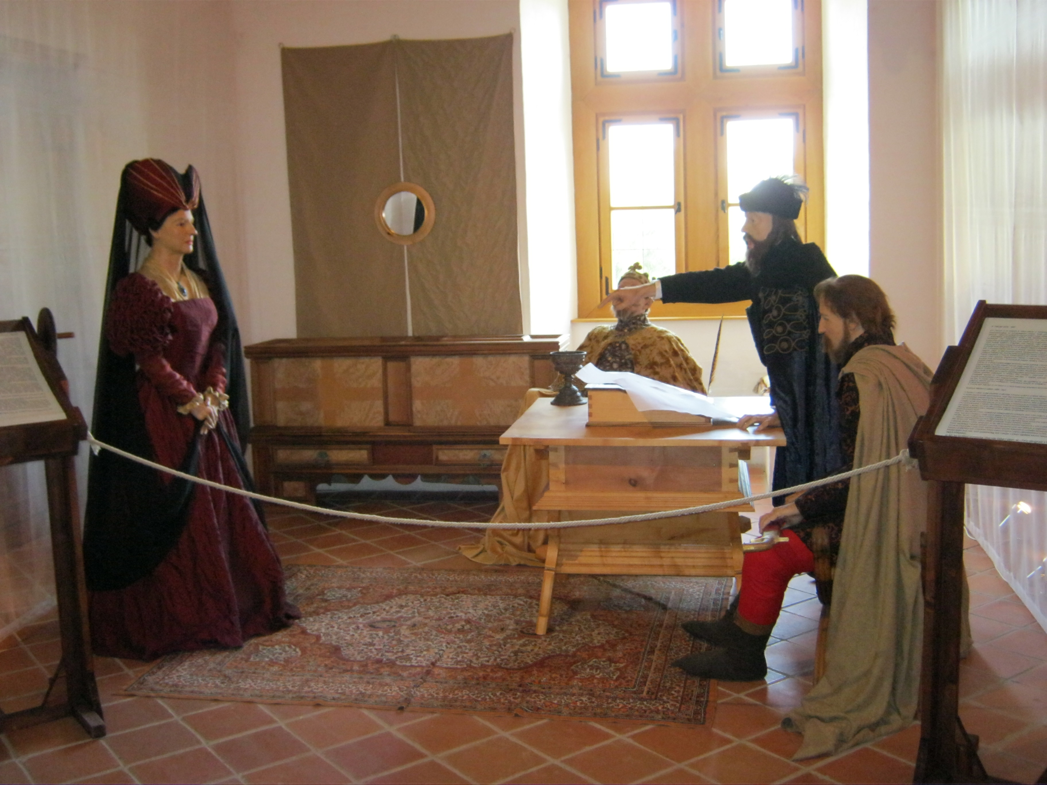 Nyilvános 1017 | 1806 | Nyírbátor, Vár utca 1. Báthori várkastély | A Báthoriak várkastélyának többször átalakított egyetlen megmaradt épületét a közelmúltban állították helyre. Pincéjében reneszánsz étterem látogatható, földszintjén és emeletén a Báthori Panoptikum 45 élethű és korhű viaszfigurában mutatja be érzékletesen a jeles nemesi család és Nyírbátor történetét. A figurák tervezője és készítője Megyeri János szobrászművész. A megtekintést olvasható és hallgatható kalauzolás kíséri. A kiállítást a kenyérmezei csata 530. évfordulóján, 2009.október 13-án adták át. Az 1479-ben a törökkel vívott csata egyik hőse Báthori István volt. A kiállítás további része a XVI-XVII. századi főrangú hölgyek életét mutatja be, s kiemelten összpontosít a Nyírbátorban született híres-hírhedt Báthori Erzsébetre. Vitatható, hogy megelevenedik a látogató előtt a vérfürdő elképzelt jelenetsora, ugyanis a kutatások szerint ezzel Báthori Erzsébetet vagyonának megszerzése miatt és politikai okokból, igazságtalanul vádolták meg. Ügyében hivatalos tárgyalásra sem került sor, pedig a képen látható jelenet ezt sugallja. Felh. irod.: Látnivalók Szabolcs-Szatmár-Bereg megyében. Miskolc, Well-PRess, 1999 www.bathorivarkastely.hu A fénykép 2010 augusztus elején készült. |