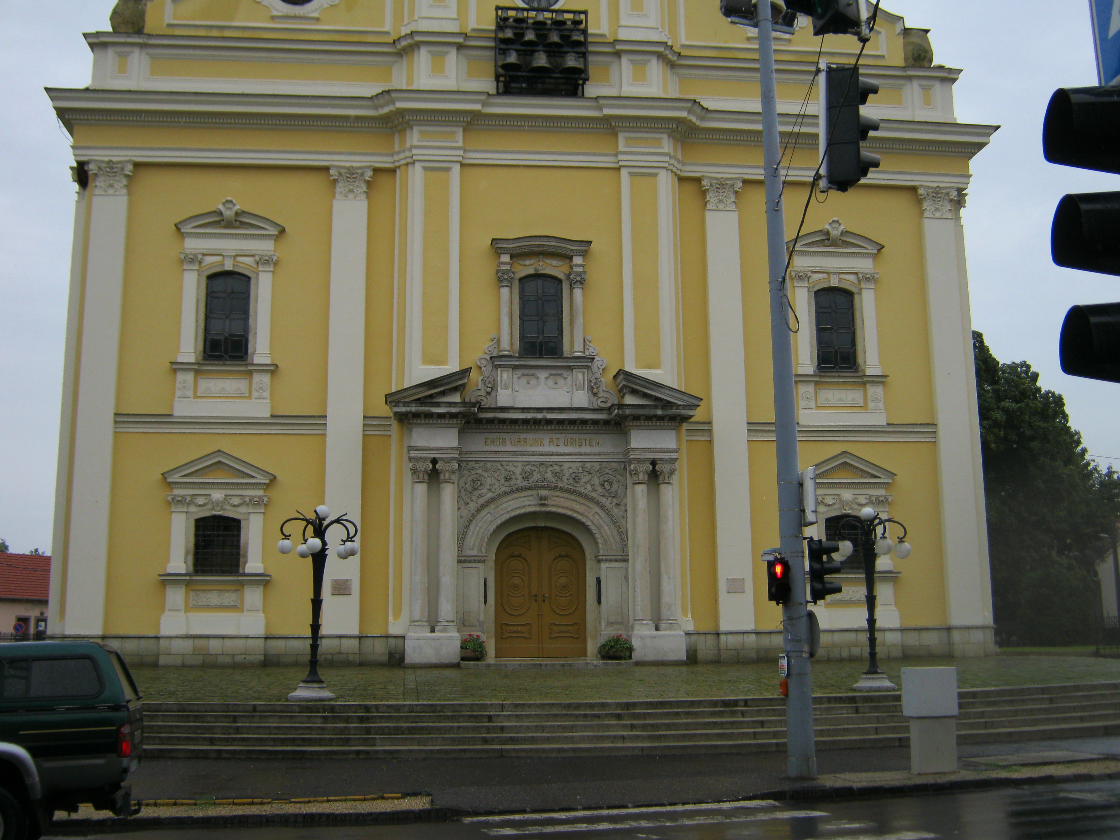 Nyilvános 975 | 1376 | Nyíregyháza, Luther tér 1. Evangélikus templom | A késő barokk épület tervezője Giuseppe Aprilis volt, alapkövét 1784-ben rakták le, s két év múlva fel is szentelhették. Építtetője az 1750-es évek közepétől Nyíregyházára települt szlovák ajkú, evangélikus hitvallású lakosság volt. Belső díszítőfestése a nyíregyházi Benczúr Gyula tervei alapján készült. 1910-ből származó orgonája Rieger Ottó műve. Az 1928-ban készült harangjáték a Luther Márton által írt "Jövel Szentlélek Úristen" kezdetű ének első két sorát játssza. A fénykép 2010 augusztus elején készült. Felh. irod.: Látnivalók Szabolcs-Szatmár-Bereg megyében. Miskolc, Well-PRess, 1999 |