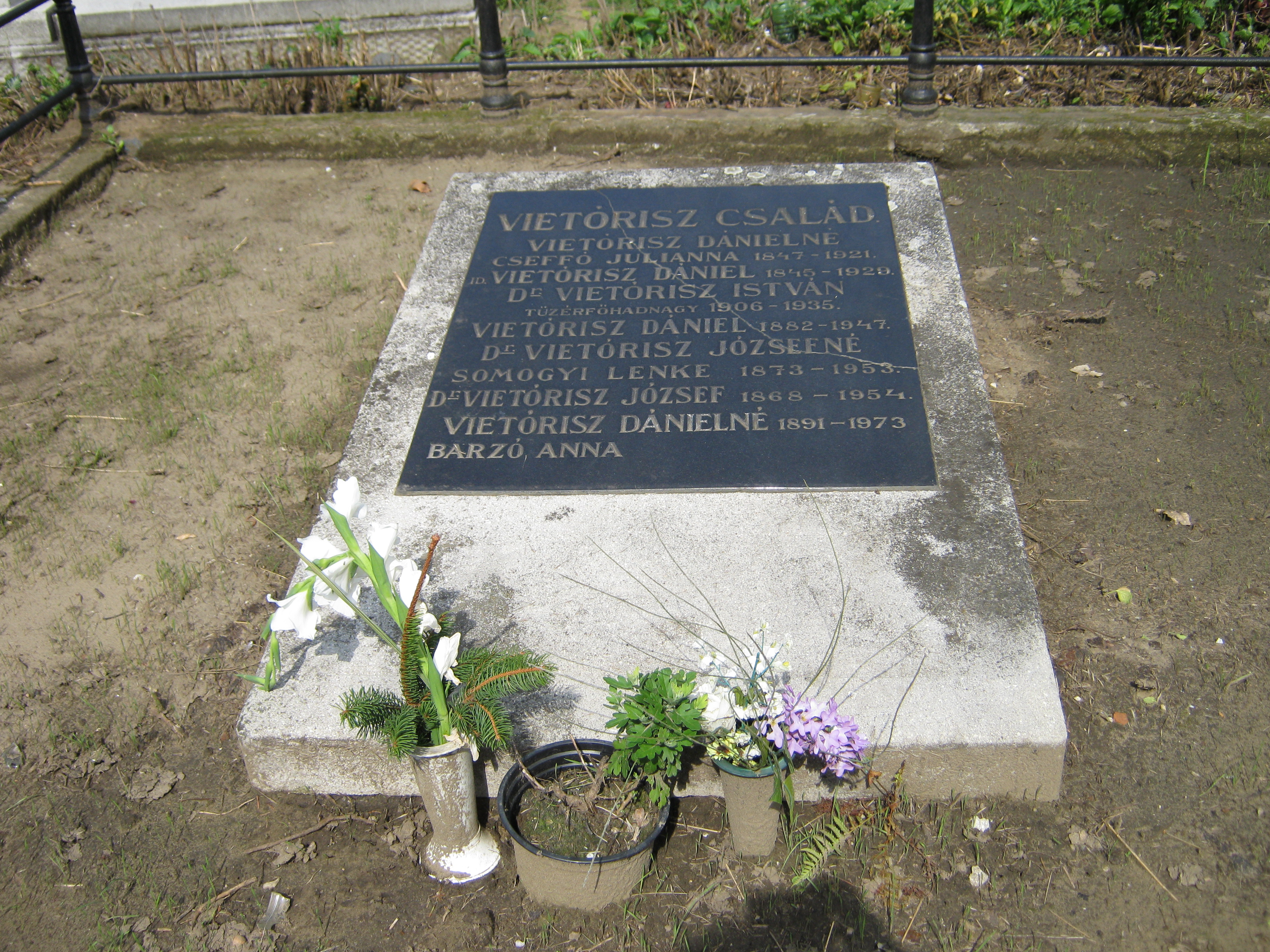Nyilvános 1011 | 1846 | Nyíregyháza, Pazonyi tér, Északi temető: Vietórisz József | A Vietórisz csakád sírjában nyugszik dr. Vietórisz József (1868-1954) tanár, költő, a Kisfaludy Társaság tagja, az Aeneas és a Cythara Sanctorum (a tirpákok egyházi énekeskönyve) fordítója. Felh. irod.: Fazekas Árpád - Szekrényes András: Nyíregyháza temetői. Nyíregyháza, 1990 A fénykép 2010 augusztus elején készült |