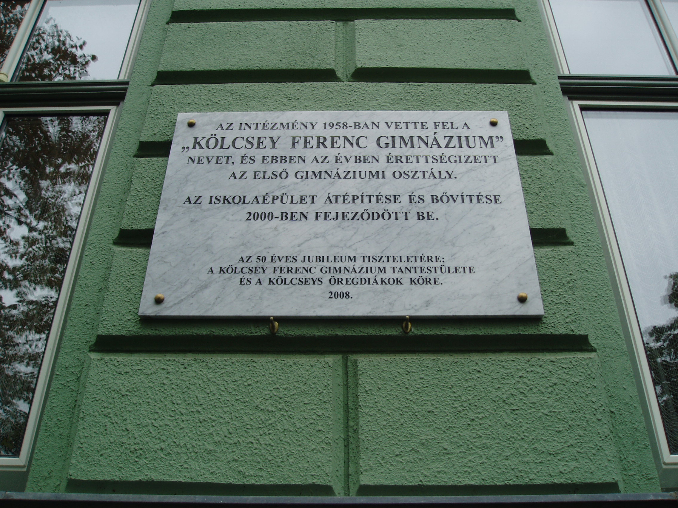 Nyilvános 995 | 1414 | Nyíregyháza, Széchenyi utca 6. Kölcsey Ferenc Gimnázium | Épületét 1901-ben, Barzó Mihály tervei alapján, pénzügyigazgatósági székháznak emelték. 1925-től, 1957-ben történt megszűnéséig középfokú tanítóképző intézetként működött. Azóta a Kölcsey gimnázium otthona. Az első gimnáziumi osztály 1954/55-ben még egy korábbi épületben kezdte meg a tanulást, de már itt érettségizett 1959-ben. Az iskolaépület homlokzatán több emléktábla idézi az egykori tanítóképző, majd gimnázium neves tanárainak és diákjainak alakját. Felh. irod.: www.kolcsey-nyh.sulinet.hu A fénykép 2010 augusztus elején készült |