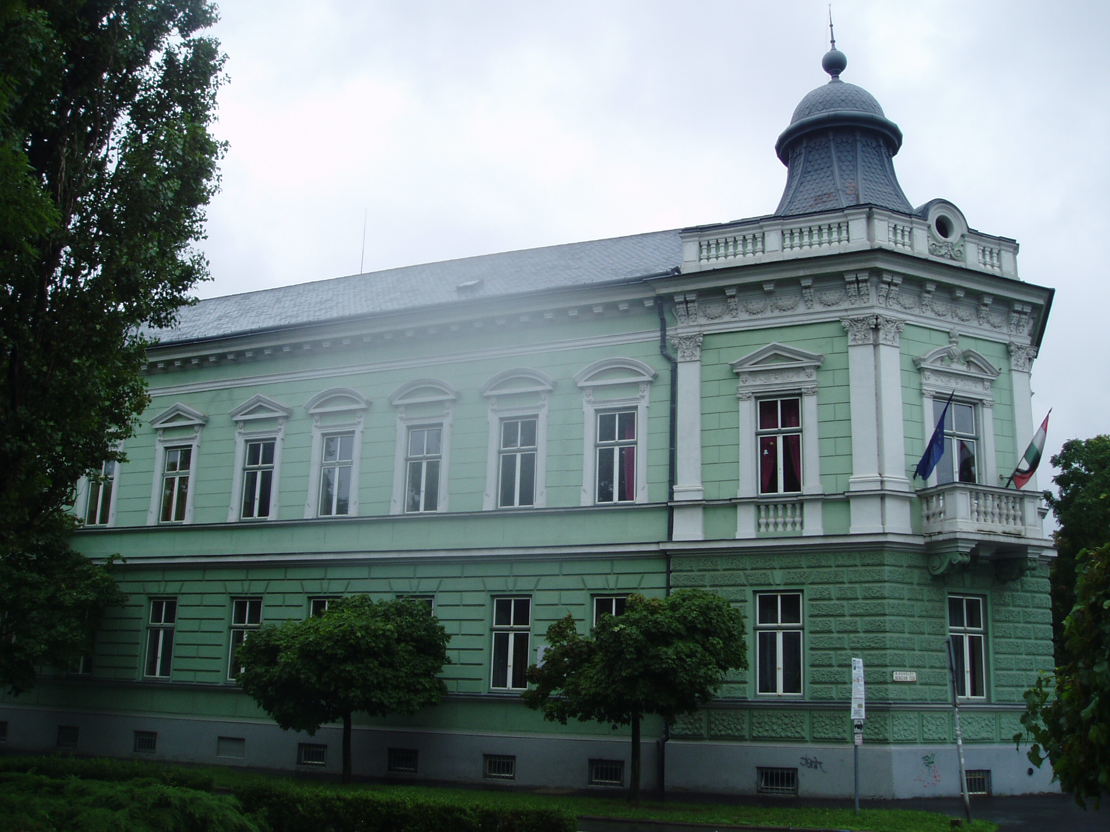 Nyilvános 1002 | 1396 | Nyíregyháza, Széchenyi utca 6. Kölcsey Ferenc Gimnázium | Épületét 1901-ben, Barzó Mihály tervei alapján, pénzügyigazgatósági székháznak emelték. 1925-től, 1957-ben történt megszűnéséig középfokú tanítóképző intézetként működött. Azóta a Kölcsey gimnázium otthona. Az első gimnáziumi osztály 1954/55-ben még egy korábbi épületben kezdte meg a tanulást, de már itt érettségizett 1959-ben. Az iskolaépület homlokzatán több emléktábla idézi az egykori tanítóképző, majd gimnázium neves tanárainak és diákjainak alakját. Felh. irod.: www.kolcsey-nyh.sulinet.hu A fénykép 2010 augusztus elején készült |