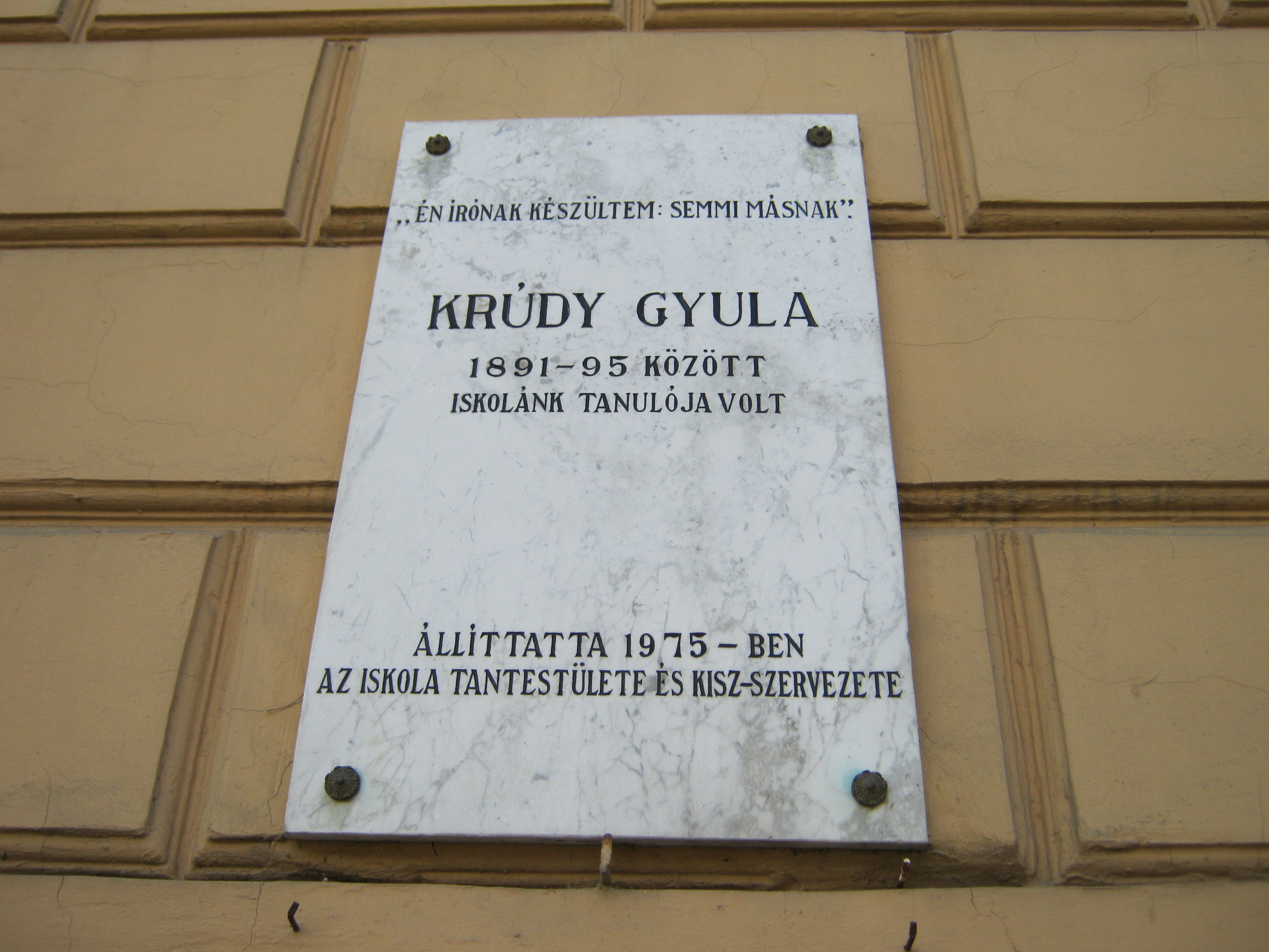 Nyilvános 953 | 1317 | Nyíregyháza, Szent István utca 19. Evangélikus Kossuth Lajos Gimnázium | A megye legrégibb középiskolája. 1808-ban alapították mint evangélikus professzori iskolát (lásd: Nyíregyháza, Luther utca 5.). Nyolc osztályos gimnáziummá 1888-ra fejlesztették fel. Mai épületét ekkoriban, 1887-ben emelték Bobula János tervei szerint. Kossuth Lajos nevét 1921-ben vette fel. Az 1948-ban államosított iskolát 1992-ben kapta vissza az evangélikus egyház. Homlokzatán számos márványtábla emlékezik kiváló diákjaira, tanáraira. 1891 és 1895 között itt végezte a gimnázium felső osztályait a nyíregyházi születésű Krúdy Gyula. Kiváló tanára, Porubszky Pál fedezte fel először tehetségét, óvta, terelgette a fiút. "Hogy író lettem, neki köszönhetem. Az első álmokat, ábrándozásokat ő ojtotta belém, ő nevelte fel..." - emlékezett Krúdy. Felh. irod.: www.eklg.hu Szabó Ede: Krúdy Gyula. Bp. Szépirodalmi Kiadó, 1970 A fénykép 2010 augusztus elején készült |