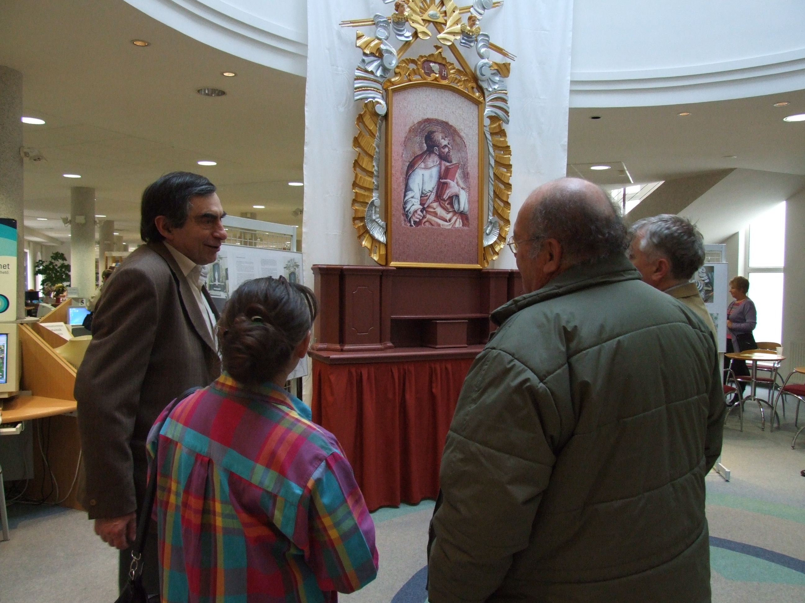 A felújított oltárt bemutató beszélgetés egy csoportja.JPG