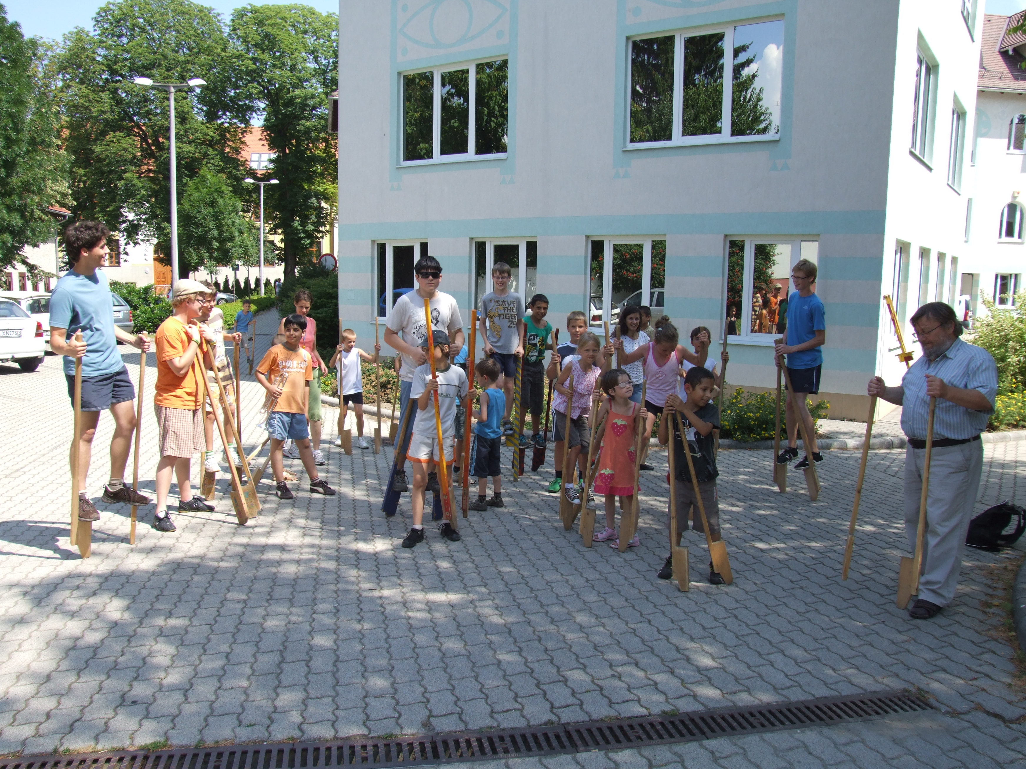 Olvasótábor 2013 résztvevők és piaristák gólyalábaznak