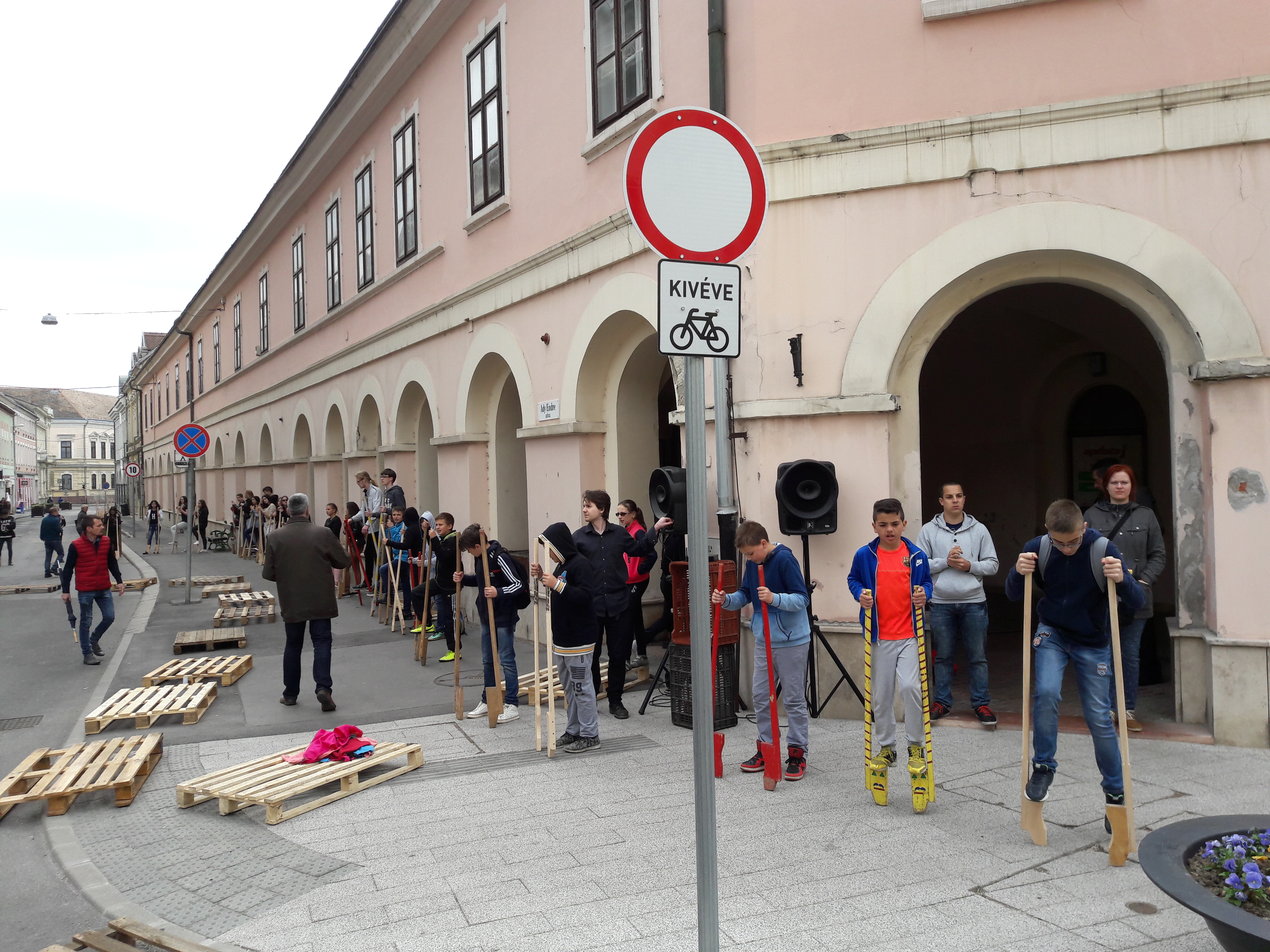 2017.04.27. Tömeges gólyalábra állás a Fő út - Ady u. kereszteződésében