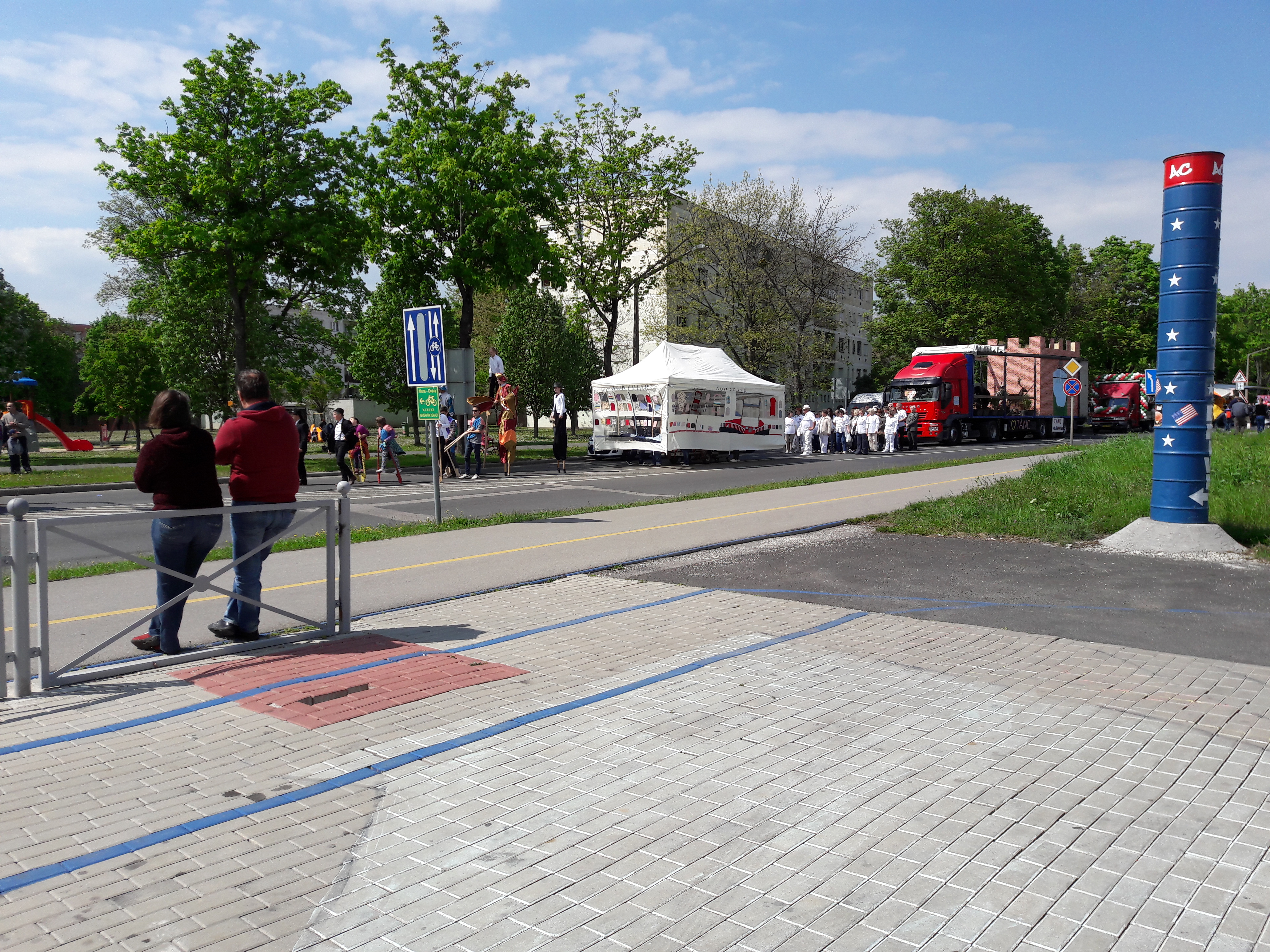 2017.04.30. Utca Tánc Fesztivál - Vonulás - Gólyalábasok, fekete kalapos táncosok, meridián tornások