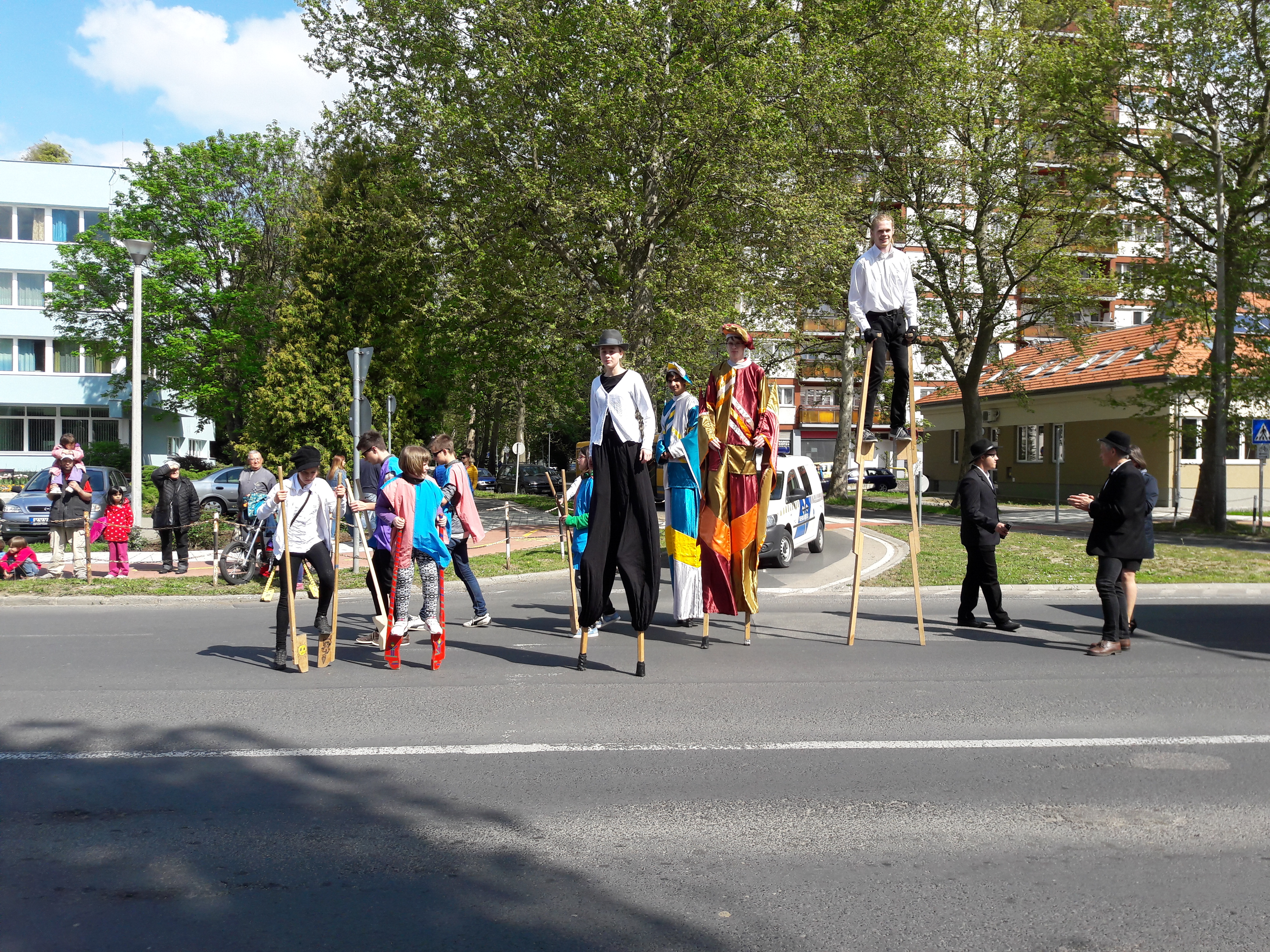2017.04.30. Utca Tánc Fesztivál - Vonulás - Gólyalábasok, fekete kalapos táncosok, meridián tornások