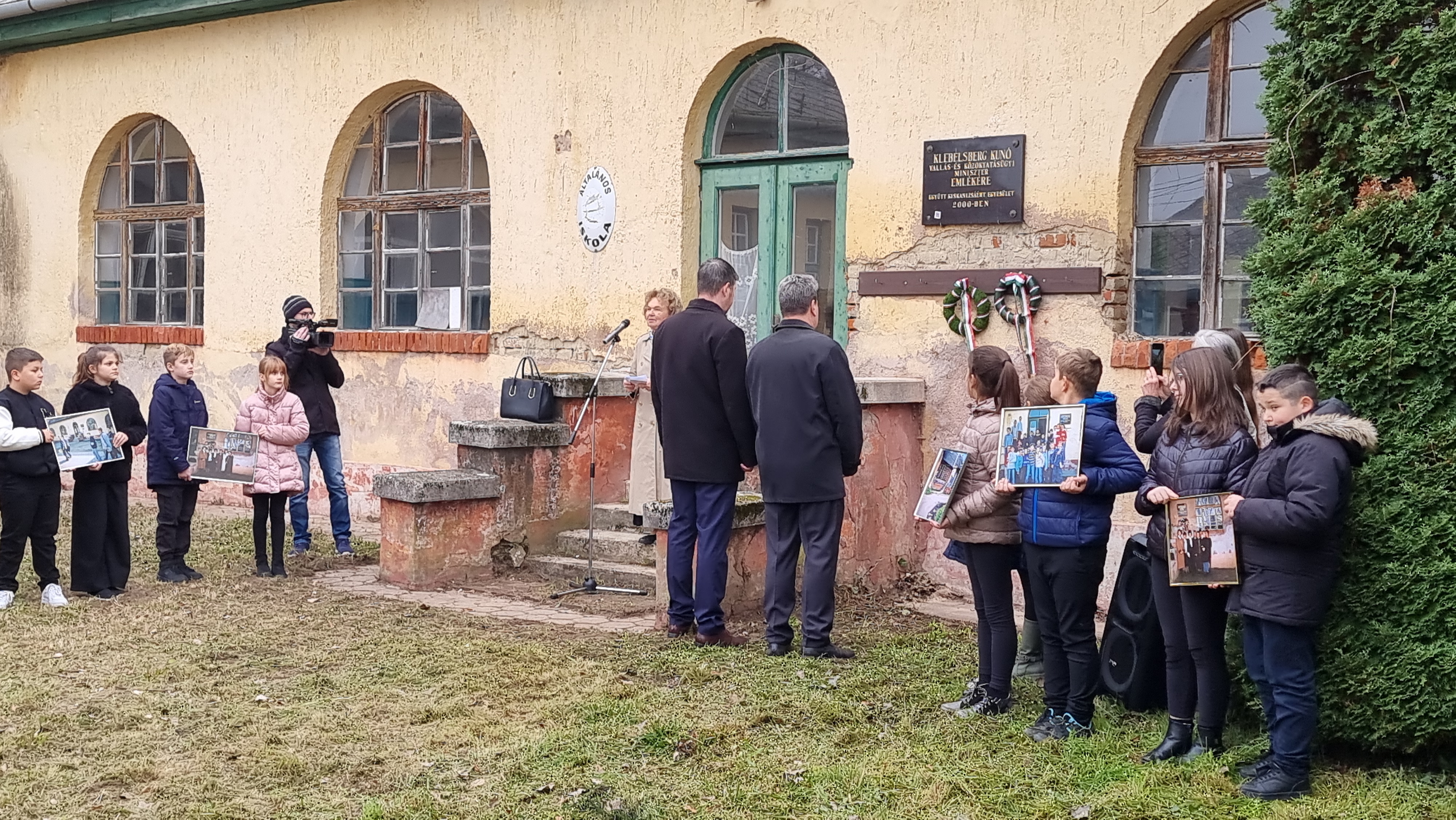 2025.11.11. Klebelsberg Kunó emléktábla koszorúzás és QR-kód felragasztás