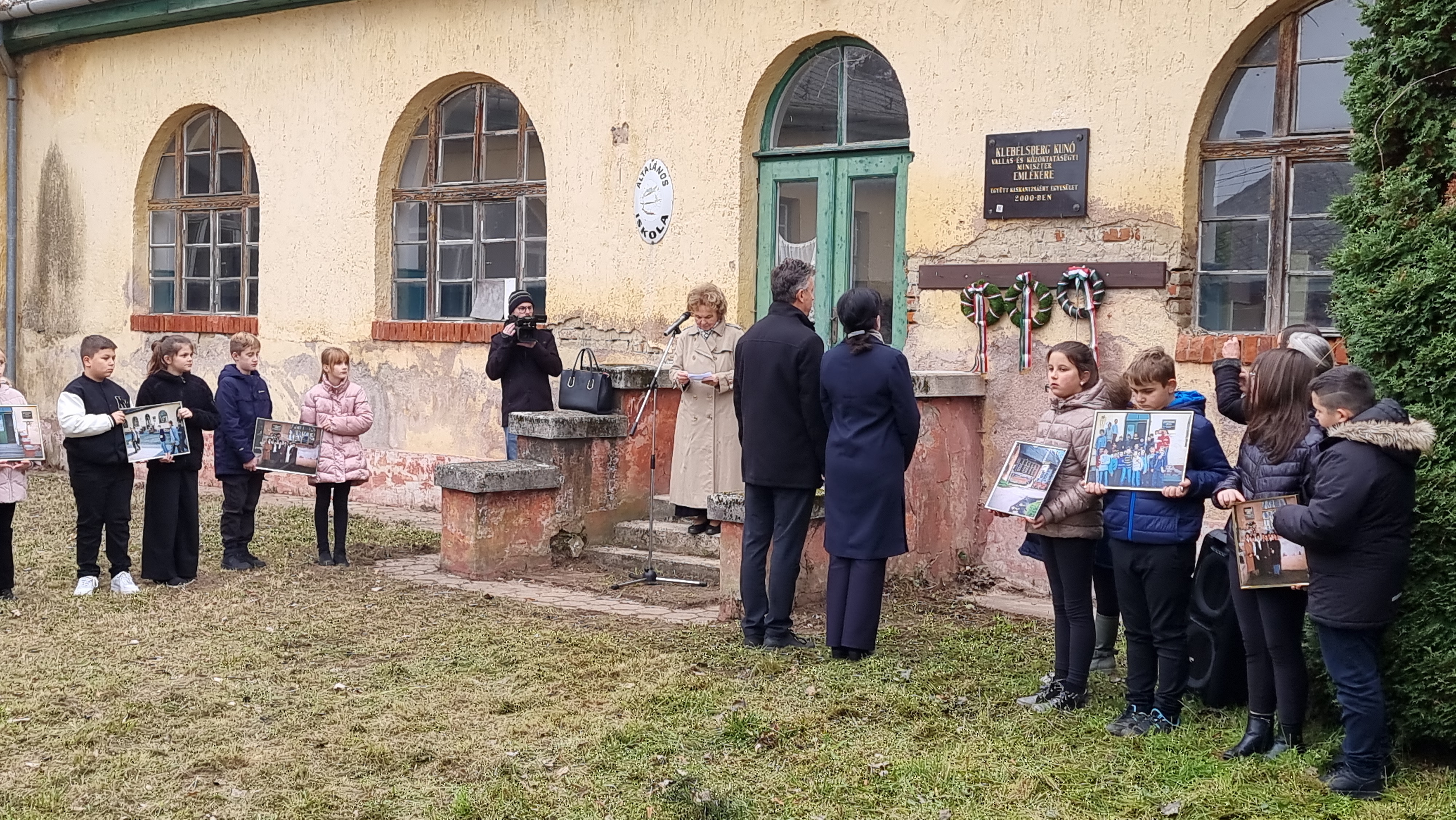 2025.11.11. Klebelsberg Kunó emléktábla koszorúzás és QR-kód felragasztás
