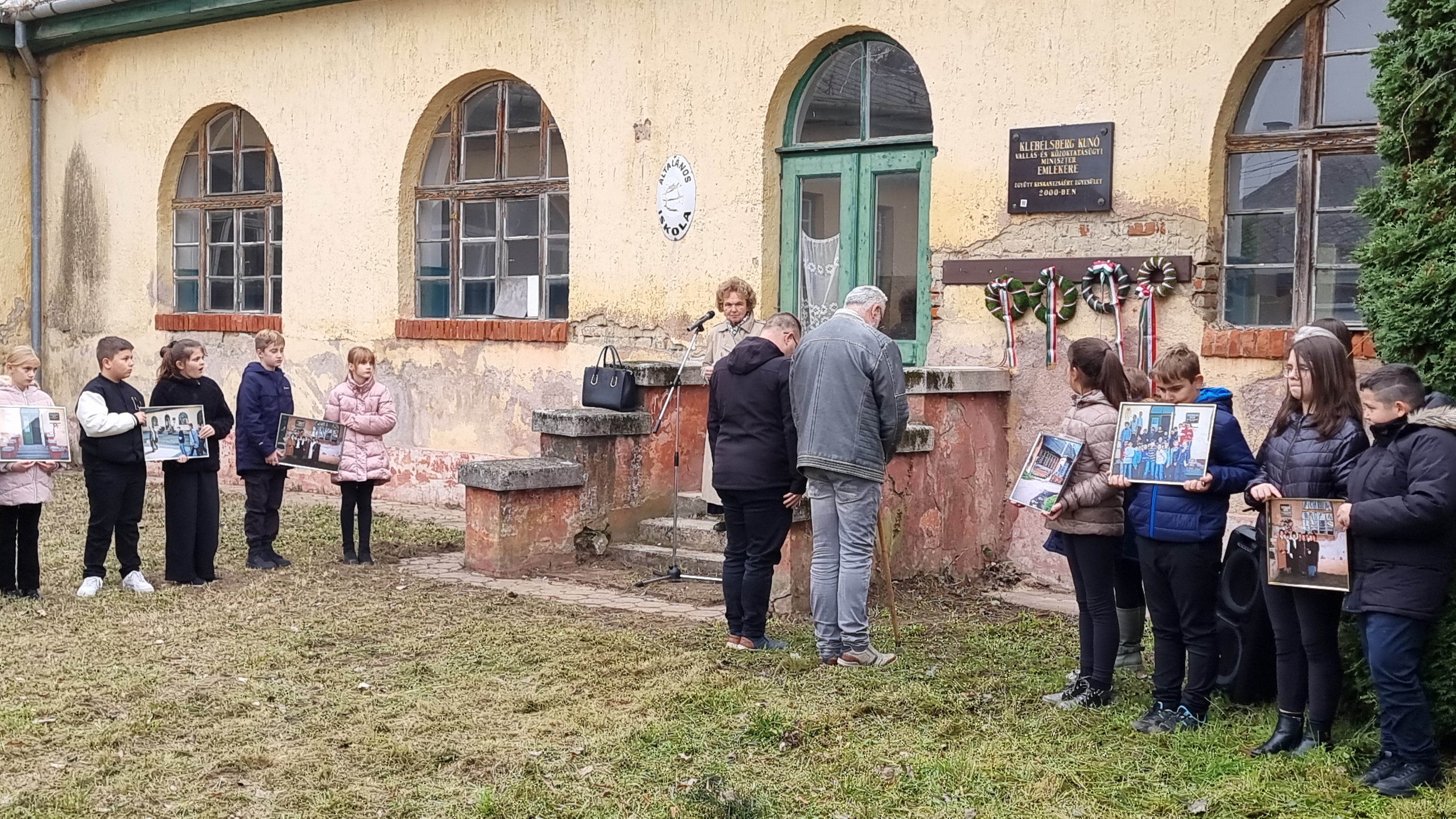 2025.11.11. Klebelsberg Kunó emléktábla koszorúzás és QR-kód felragasztás